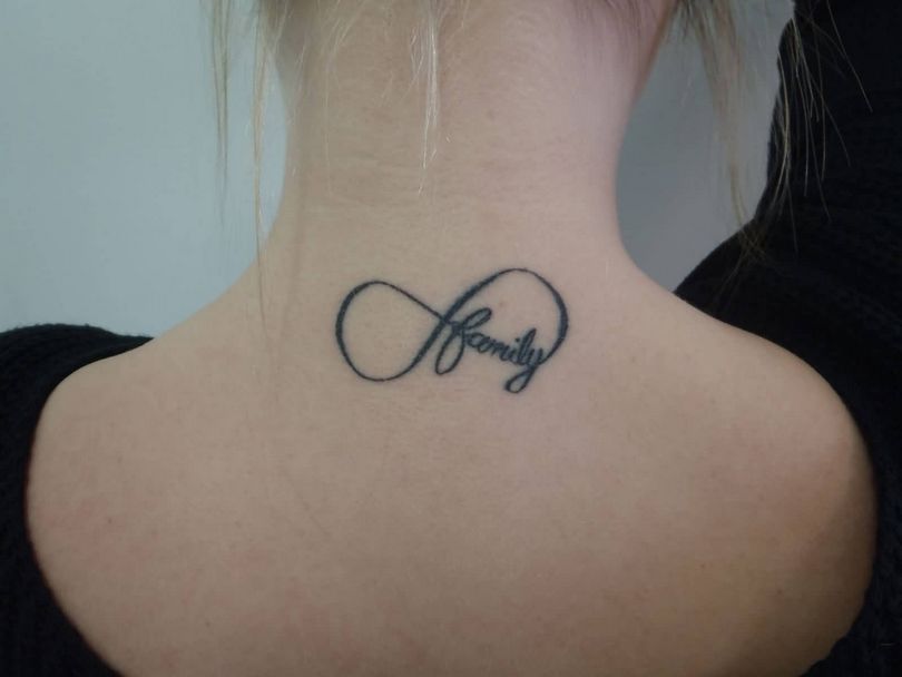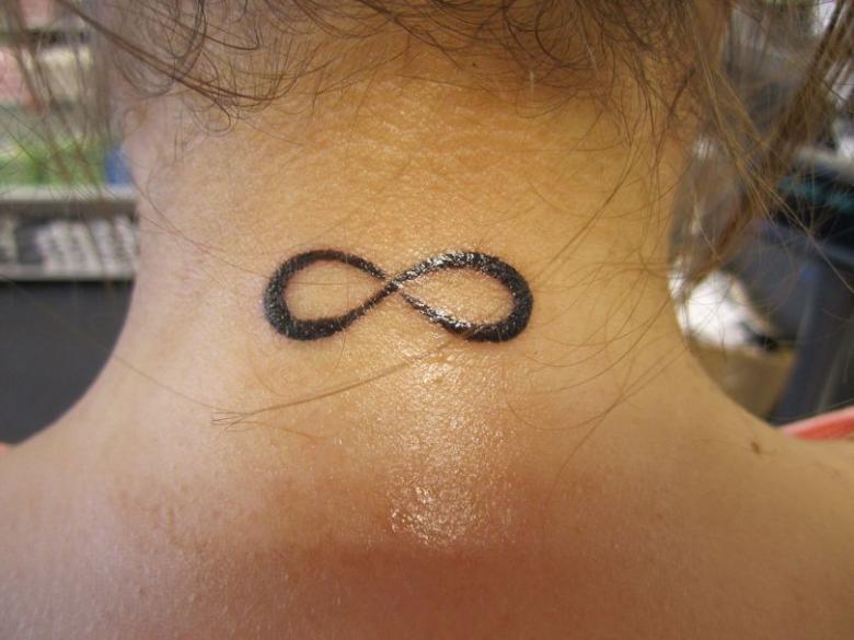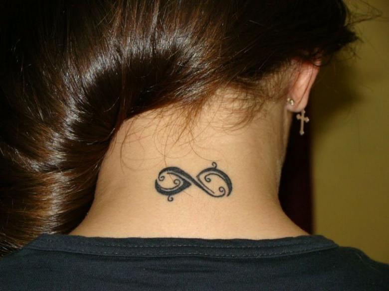 Un autre endroit où l'on peut discerner le symbole de l'éternité est le cou. De nombreuses personnes préfèrent "cacher" le symbole autour de leur cou, il est souvent petit et de style minimaliste.