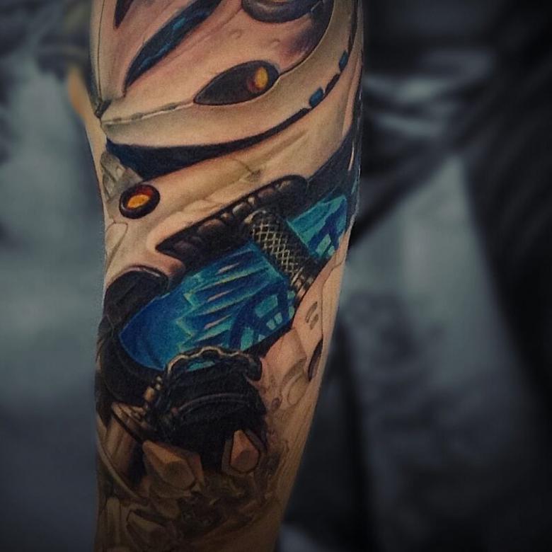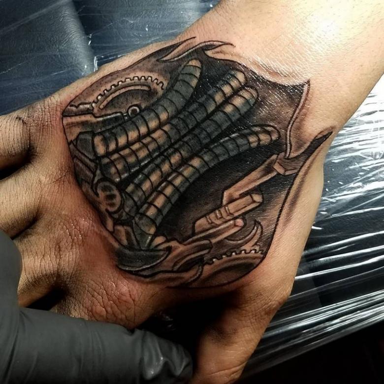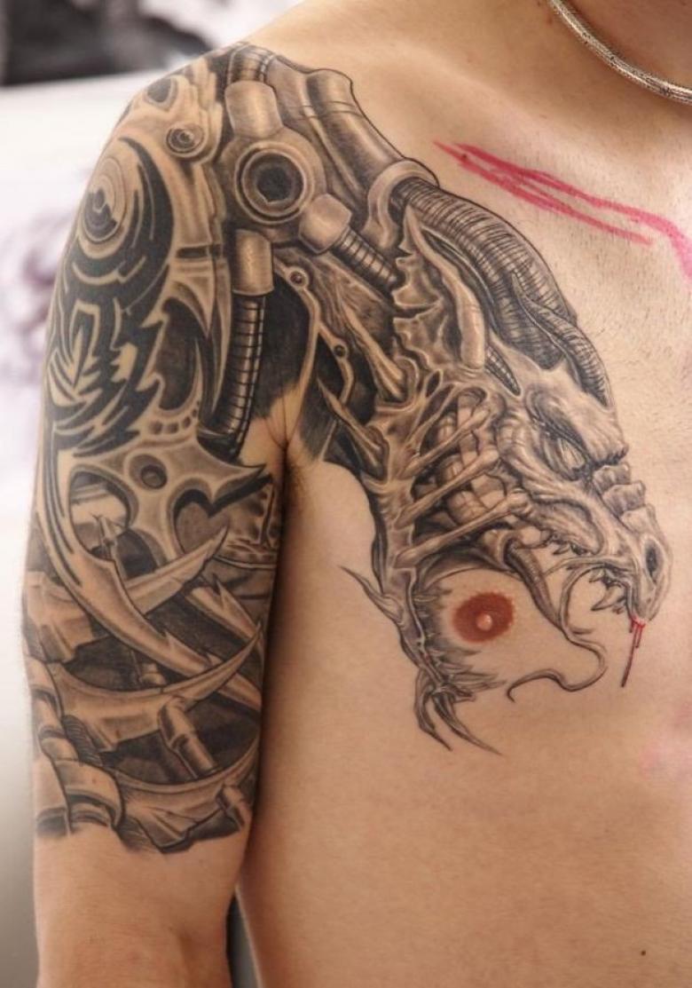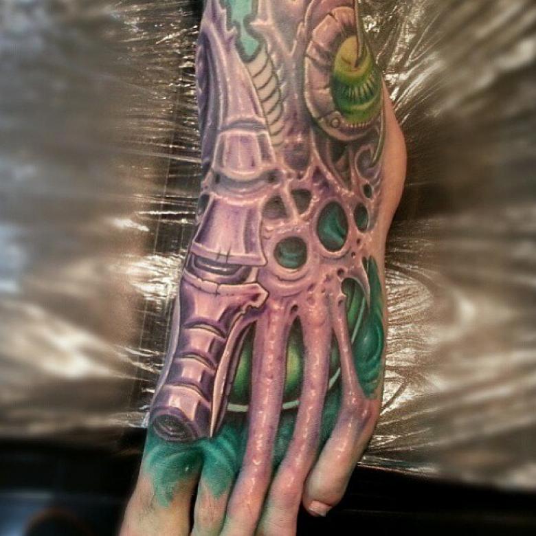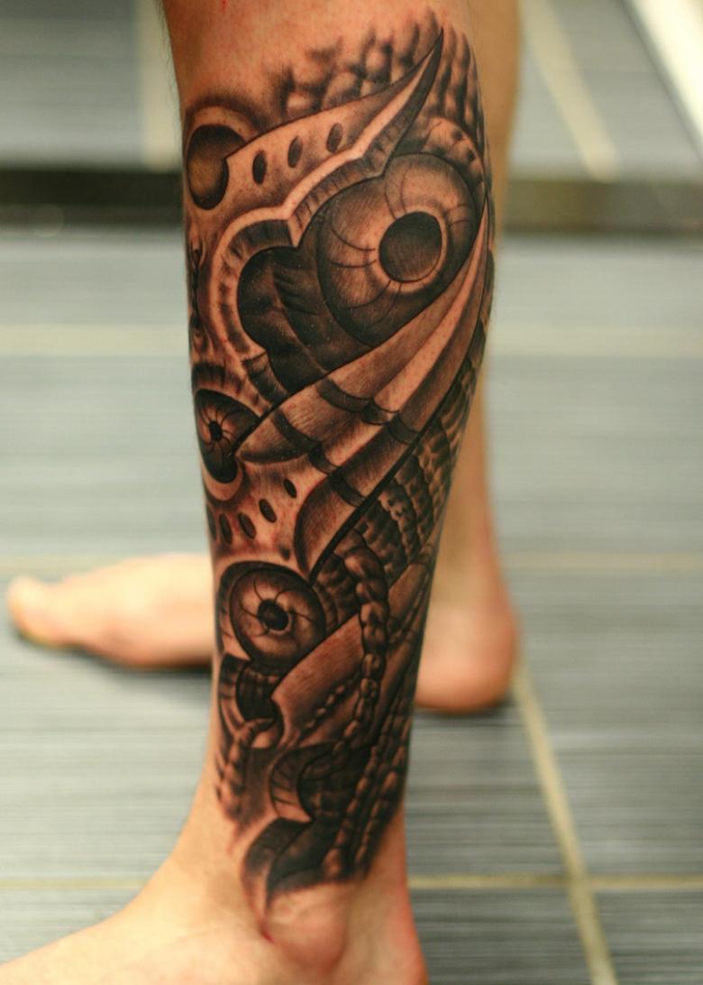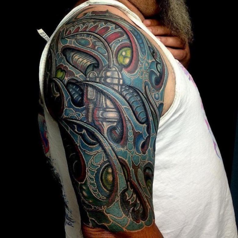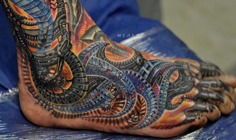 La biomécanique est un style de tatouage populaire. L'exécution d'un tel dessin requiert une énorme patience et une grande habileté de la part de l'artiste. Devant le maître tatoueur, le défi consiste non seulement à créer une esquisse d'une belle image corporelle, mais aussi à lui insuffler la vie. L'image doit être aussi réaliste et vivante que possible.