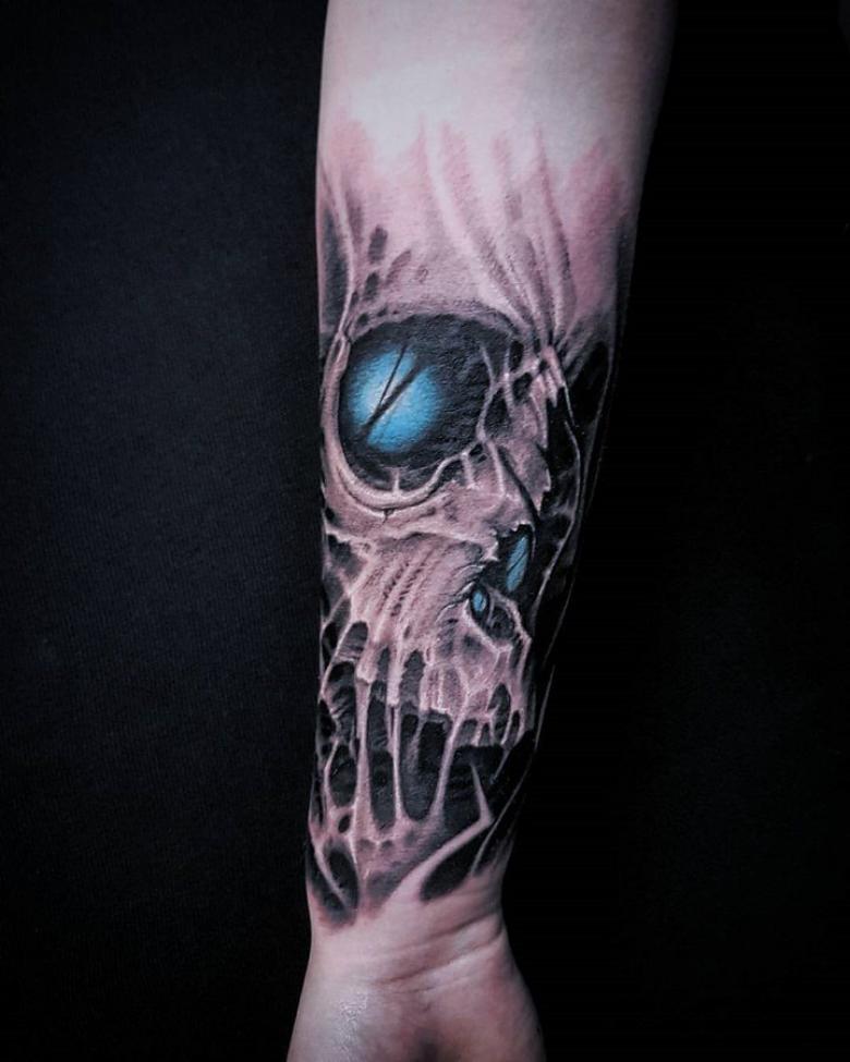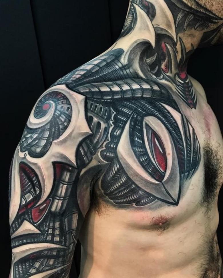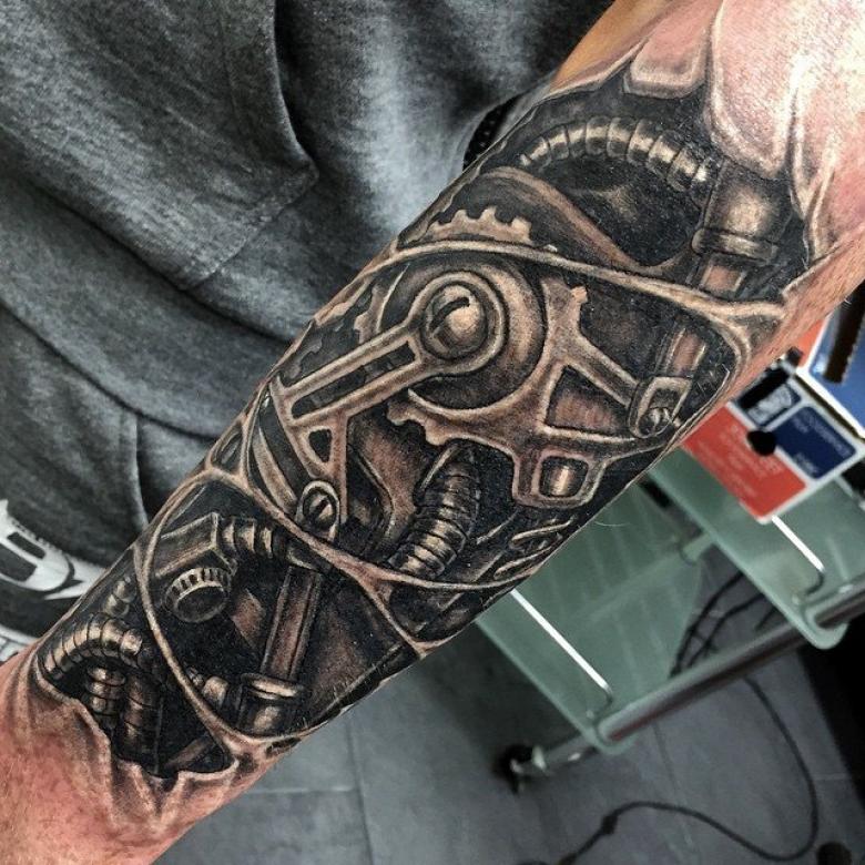 Tatouage de biomécanique - croquis homme et femme, où marquer (sur le bras, la jambe, l'épaule, l'avant-bras, comme un bras), photos impressionnantes de travail