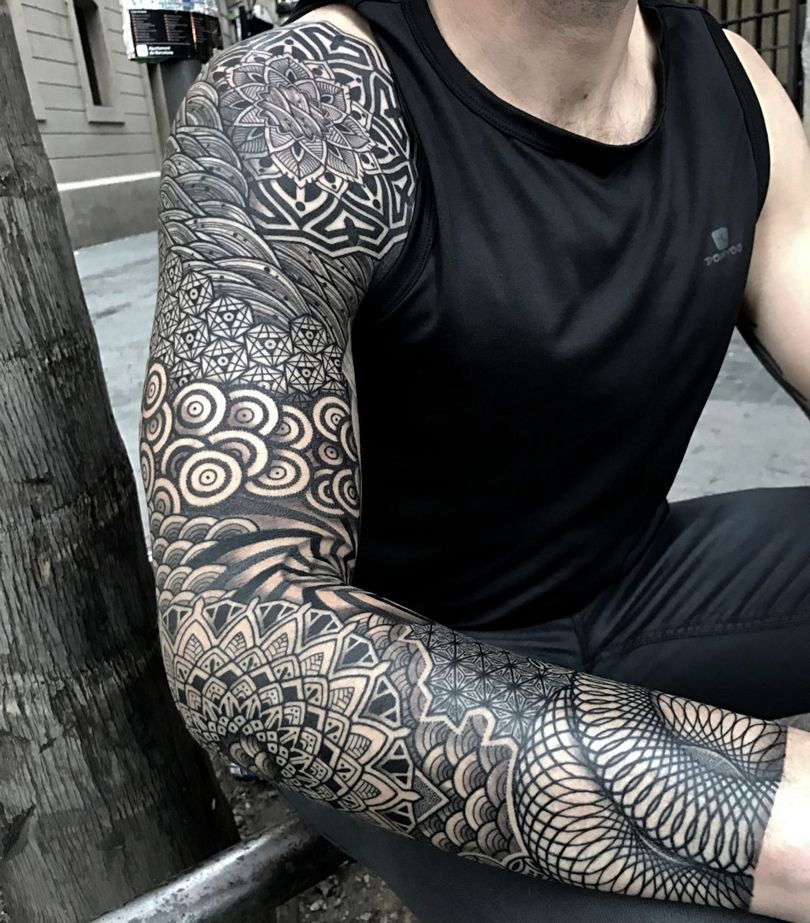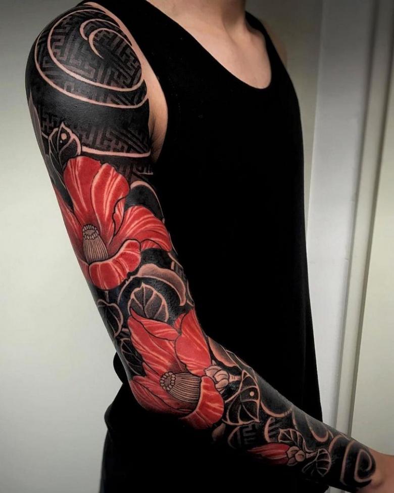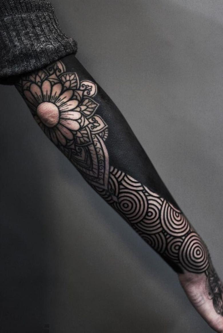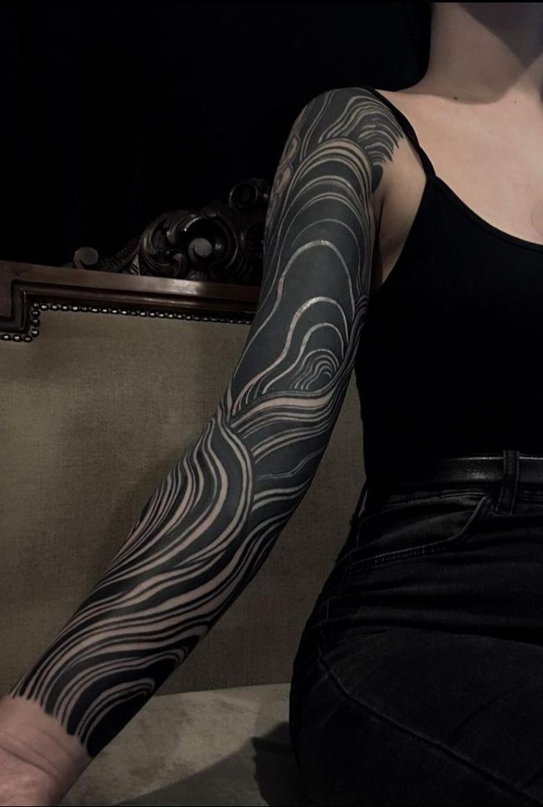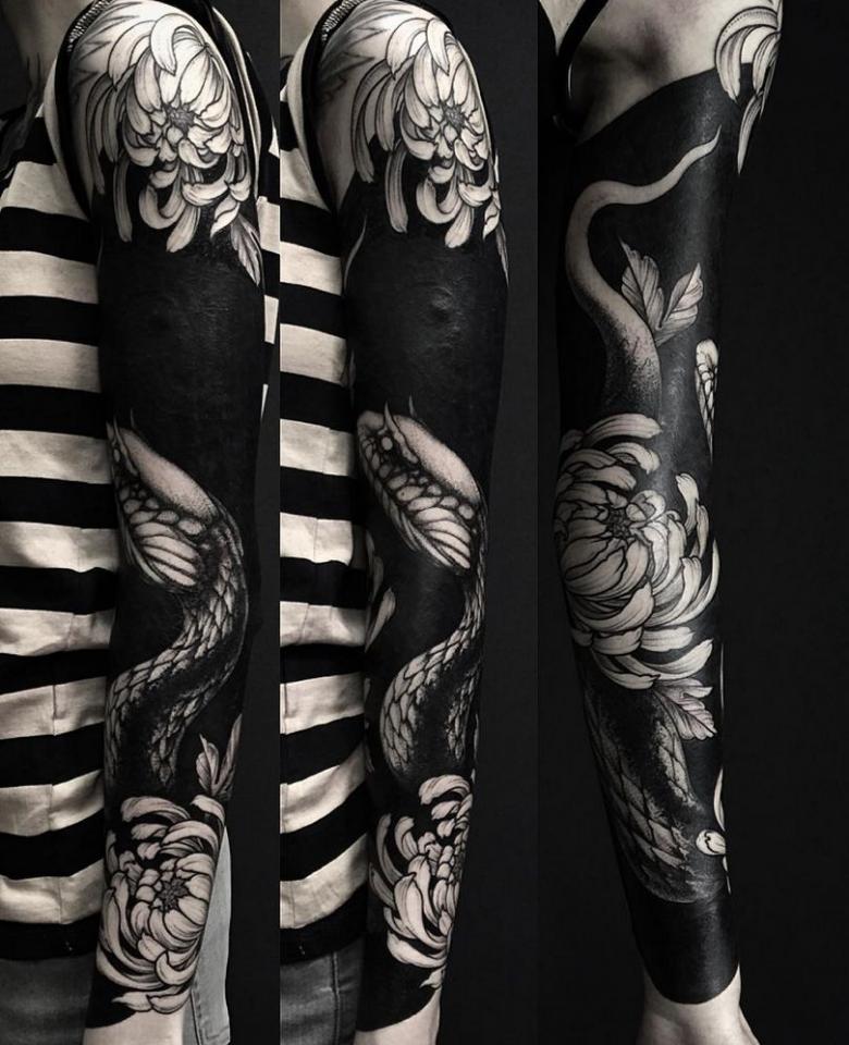 La manche blackwork, qui occupe une niche à part dans l'art du tatouage, est particulièrement intéressante. Une version audacieuse du tatouage sans âge, il commence généralement à la tête de l'épaule et coule joliment le long du bras, couvrant le poignet.