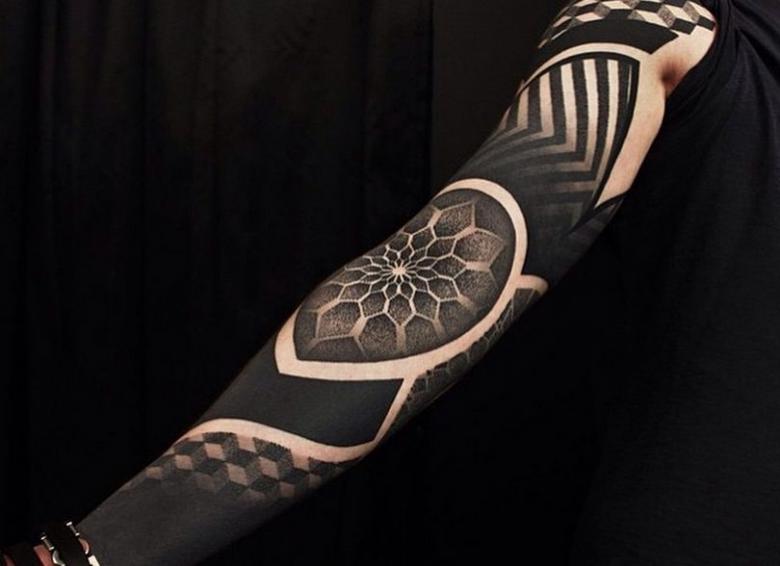 Blackwork : l'attrait des tatouages à la géométrie de sujets fantastiques, la sévérité et la mystique des ornements ethniques dans l'esprit du noir intense, les caractéristiques de l'application.