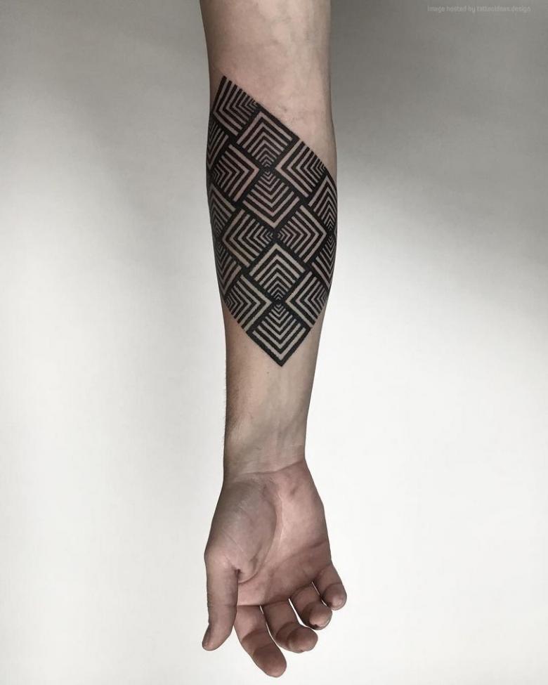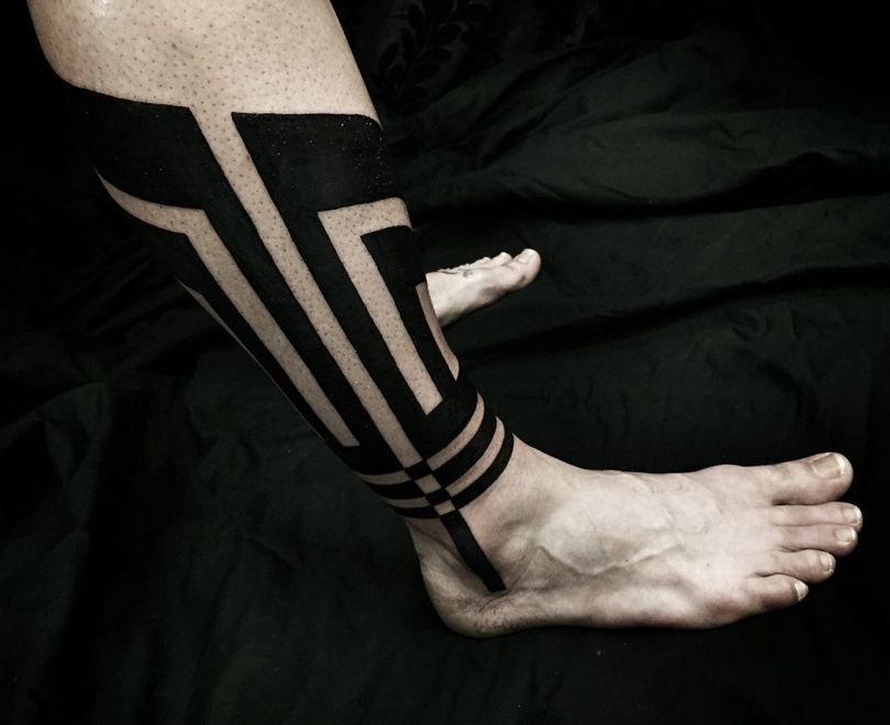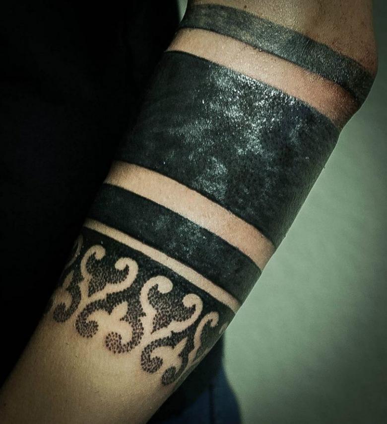 Les éléments des motifs de tatouage moderne peuvent être répétés ou alternés les uns avec les autres. La beauté particulière des motifs sur le corps est obtenue grâce au travail de conception unique du maître ou à un croquis fantaisiste du client. La présence de blocs ethniques dans les motifs noirs s'apparente à un tatouage tribal.