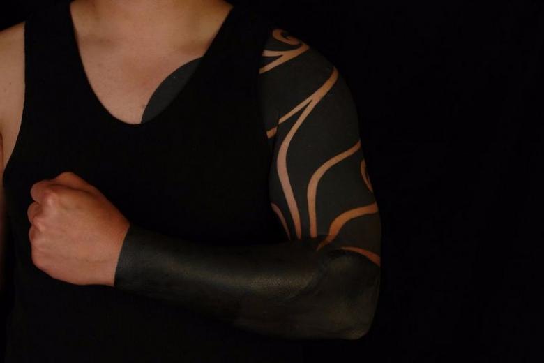 Les vrais connaisseurs du body painting se tournent de plus en plus souvent vers les maîtres du tatouage pour réaliser un dessin sur le corps dans le style du Blackwork. Des motifs complexes mais éclatants, avec de larges bandes de tons noirs et de demi-teintes, couvrent de grandes parties du corps.