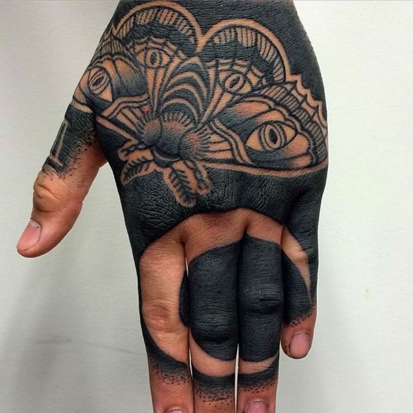 Il faudra plus d'une séance et de la patience pour obtenir un volumineux manchon noir. La complexité de la technique réside dans l'obtention d'une application uniforme du pigment, tandis que la simplicité réside dans le fait de ne pas avoir à changer de peinture pour façonner les contours et les dégradés. Mais il est essentiel de vérifier les lacunes du travail.