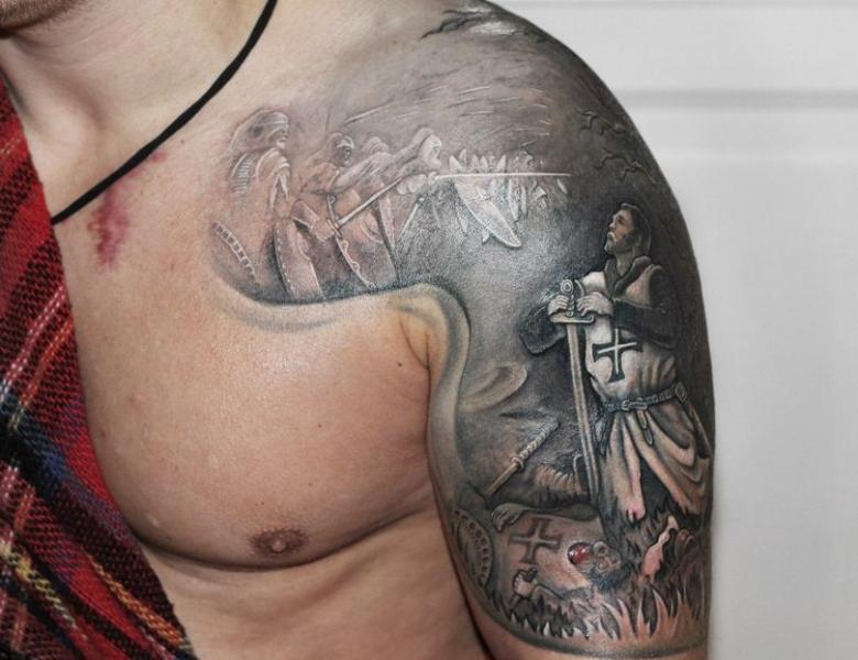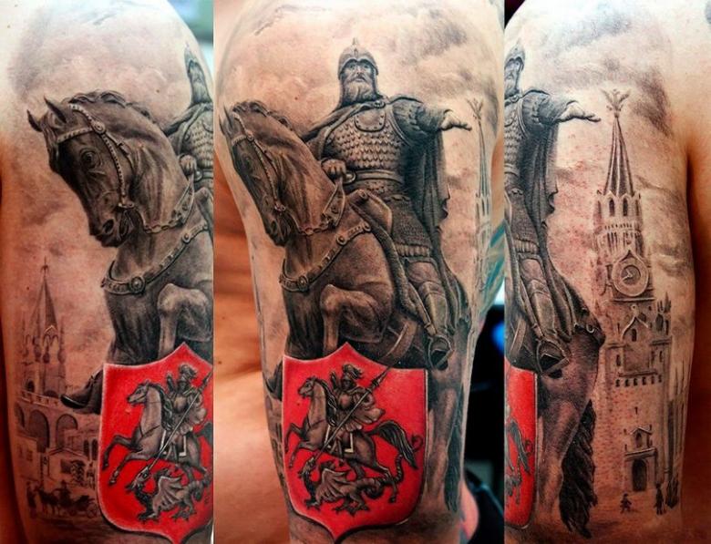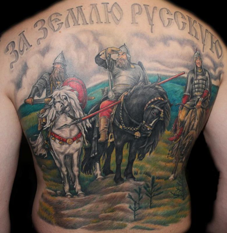Tatouage bogatyr - signification pour les hommes, croquis (y compris trois bogatyrs), placement, photos spectaculaires