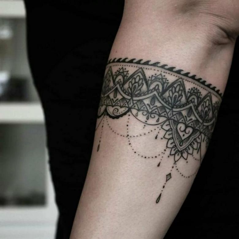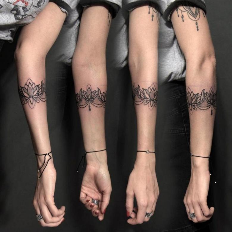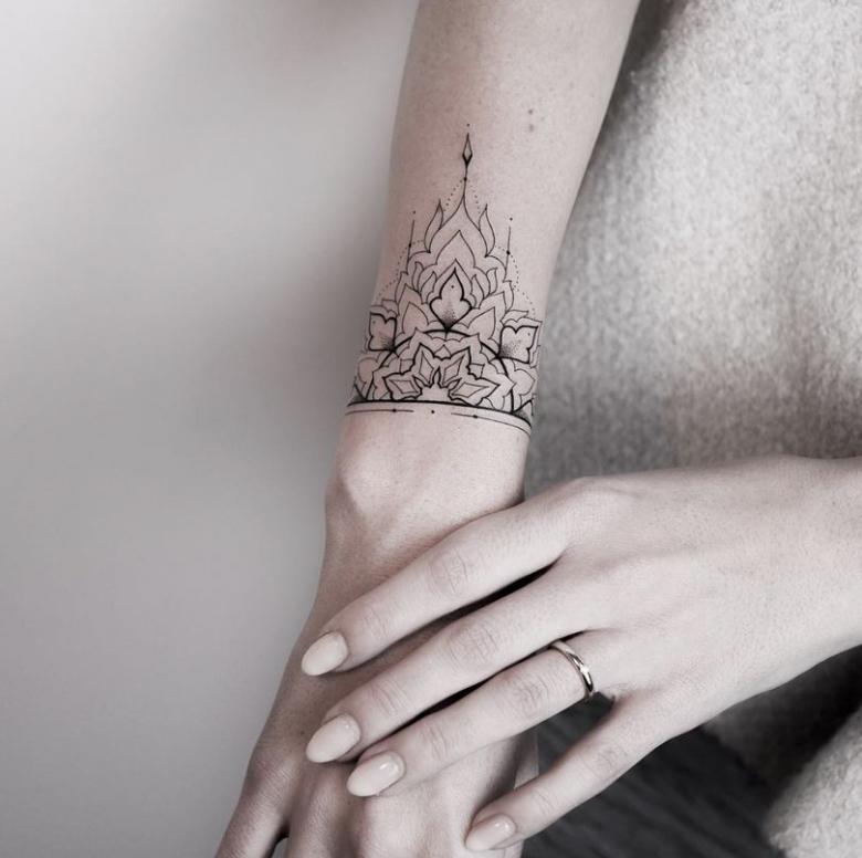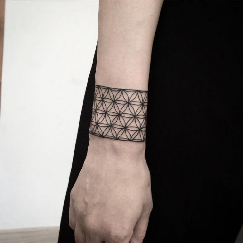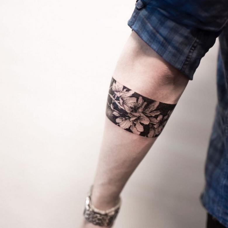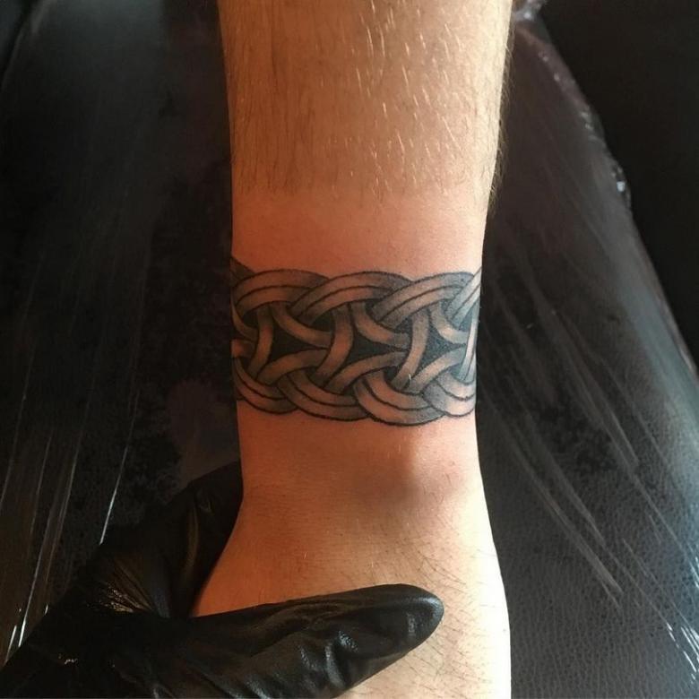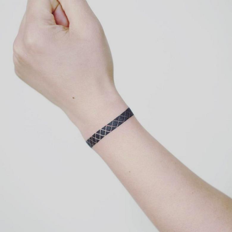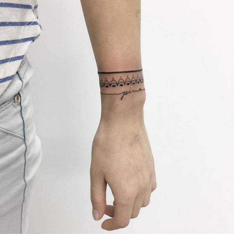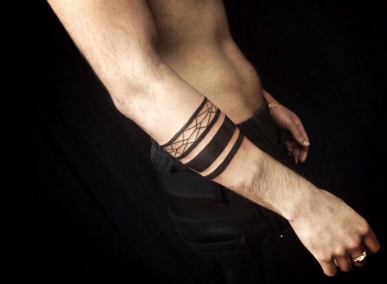 Ce type de tatouage convient à ceux qui veulent le porter comme un talisman ou une décoration. Après tout, un petit bracelet peut facilement être caché sous un vêtement. Ces dessins "rembourrés" seront une excellente solution pour ceux qui sont obligés de se conformer à un code vestimentaire strict au travail.