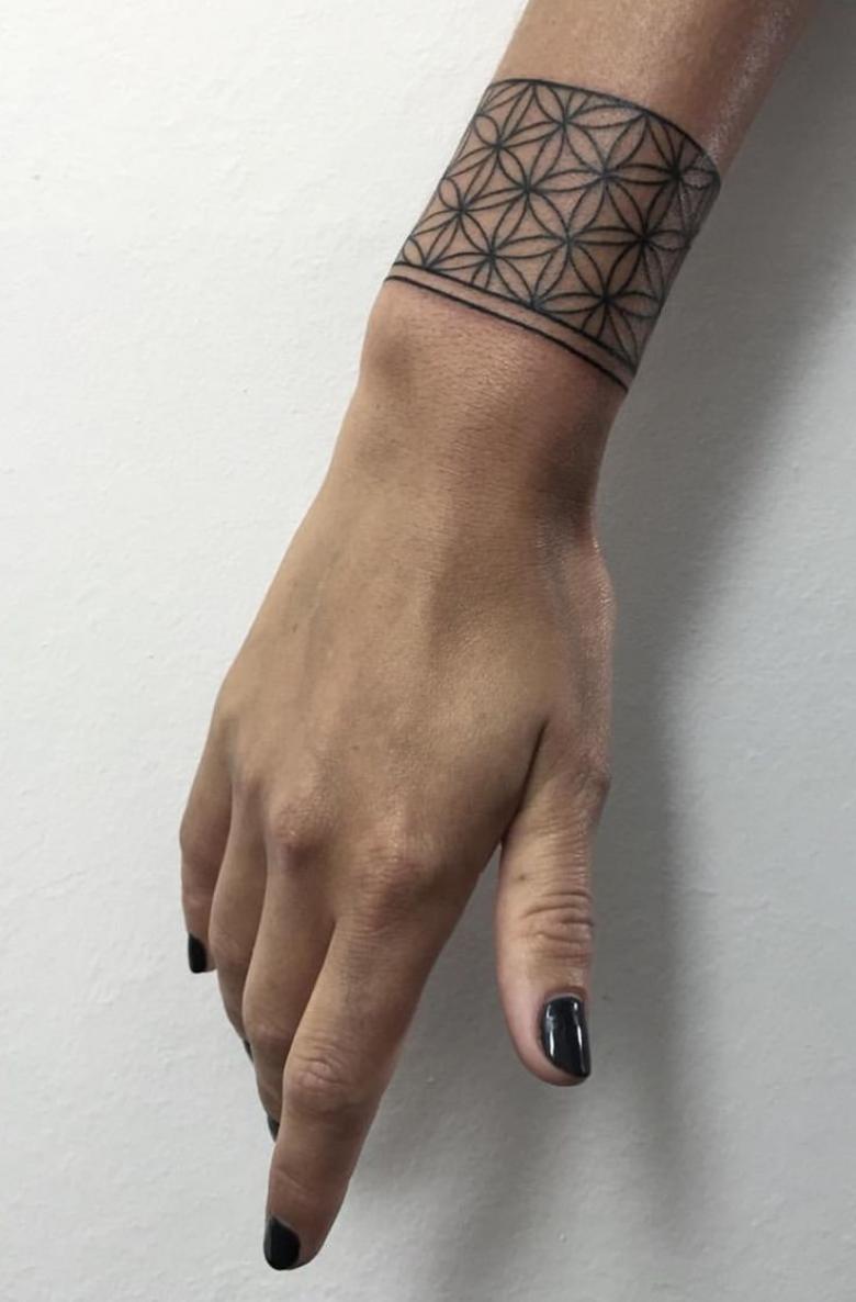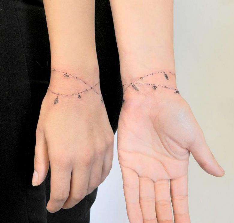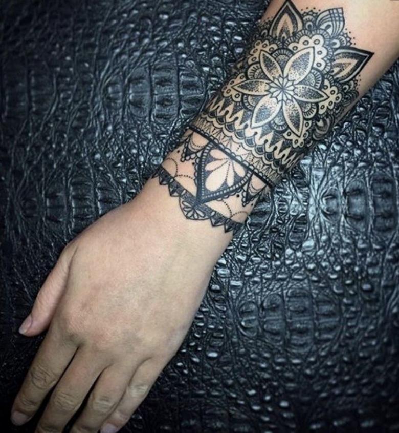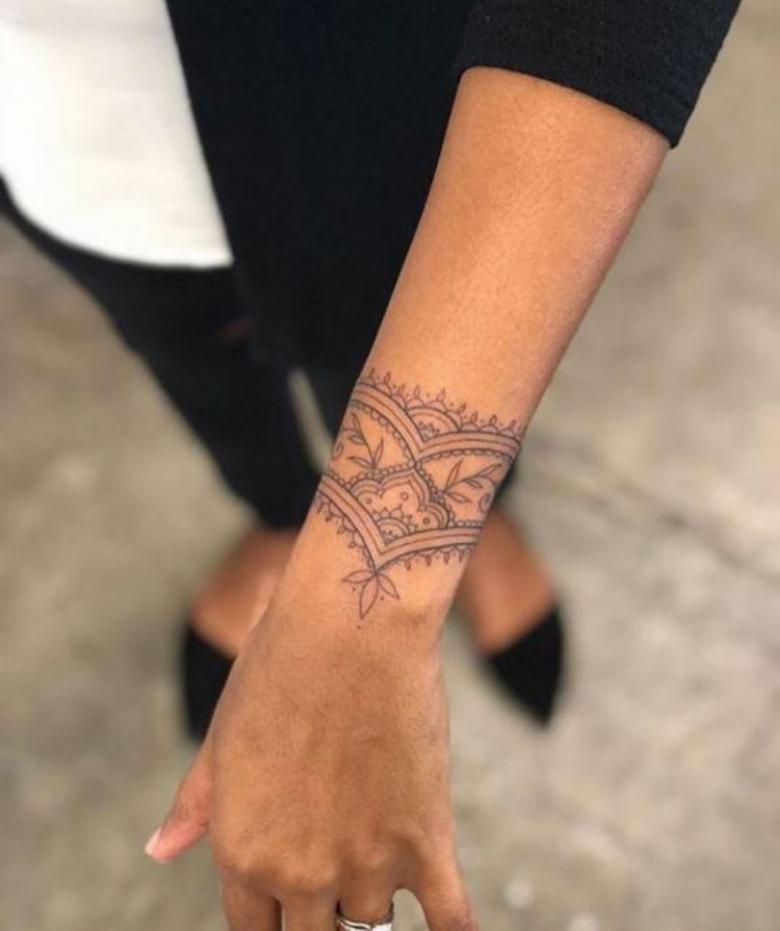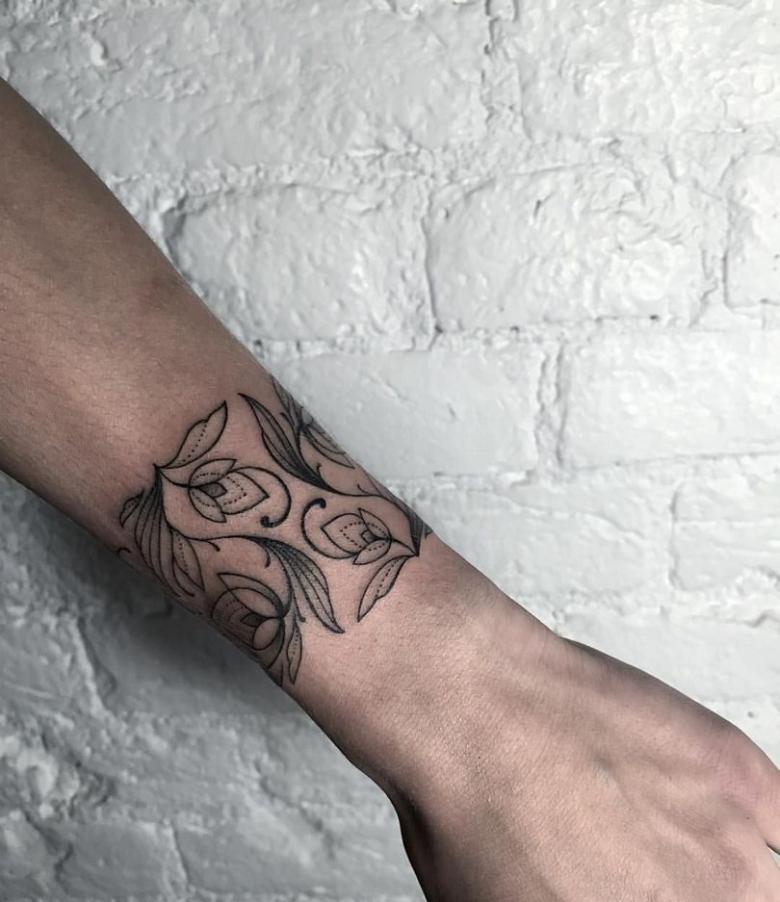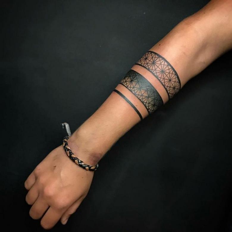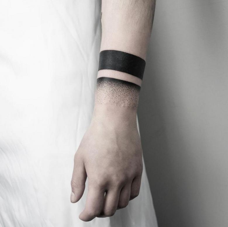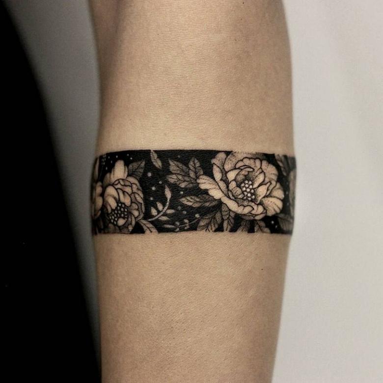 Ce type de tatouage convient à ceux qui veulent le porter comme un talisman ou une décoration. Après tout, un petit bracelet peut facilement être caché sous un vêtement. Ces dessins "rembourrés" seront une excellente solution pour ceux qui sont obligés de se conformer à un code vestimentaire strict au travail.