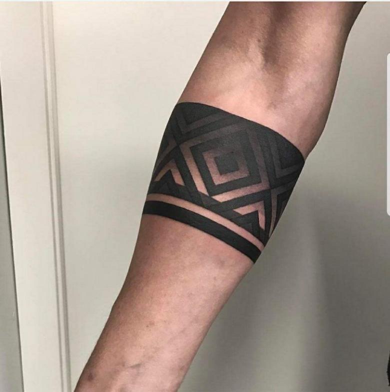 L'endroit optimal pour placer le bracelet chez les hommes est l'épaule, dans la zone du biceps. Parce que la surface est assez grande, ce qui vous permet d'appliquer de grandes esquisses.