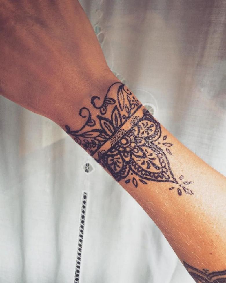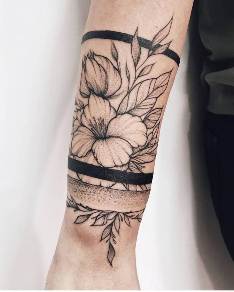 Des bracelets fins et fluides (avec des feuilles ou des mouchetures de fleurs, par exemple) plairont à une jeune fille qui veut embellir son corps. Les tatouages plus massifs et plus larges sont sûrs de plaire aux hommes.