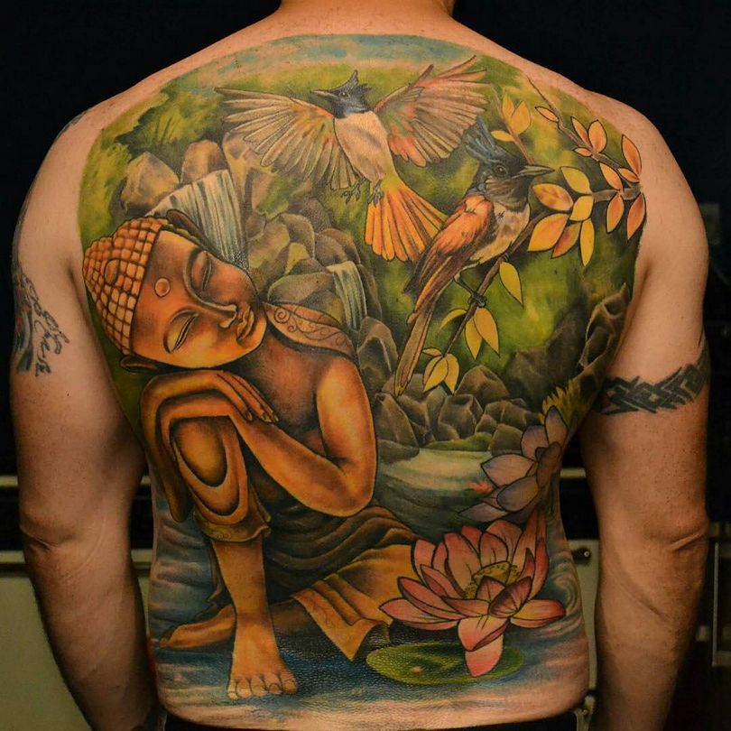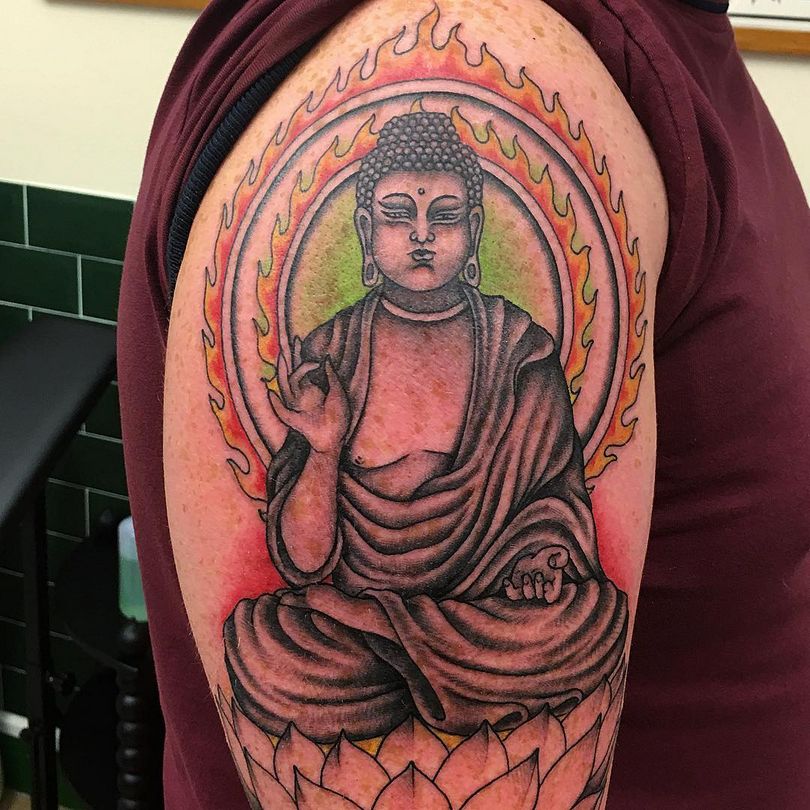 Les tatouages à motifs bouddhistes font partie des tatouages les plus populaires chez les hommes et les femmes. On pense qu'un tatouage aussi inhabituel confère à son porteur un équilibre spirituel, la paix, l'unité avec la nature et une grande force spirituelle. En outre, ceux qui sont souvent exposés à la culture et à la religion orientales et qui se font tatouer de la sorte sont souvent attirés par la croyance, la vision du monde bouddhiste et prétendent avoir atteint les plus hauts niveaux d'illumination.