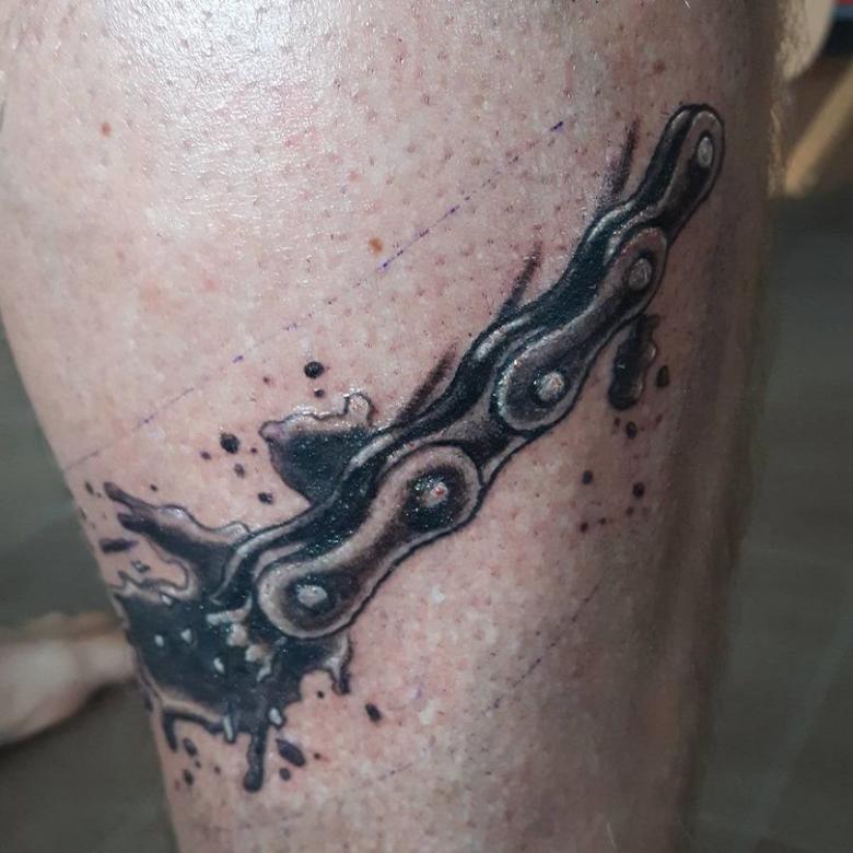 Une chaîne de vélo est un tatouage avec une signification appliquée. Il y a généralement des motifs supplémentaires, des ombres.