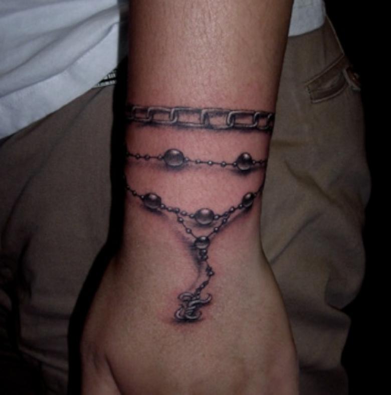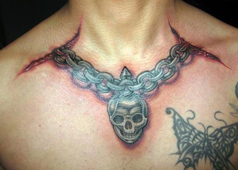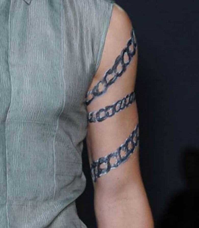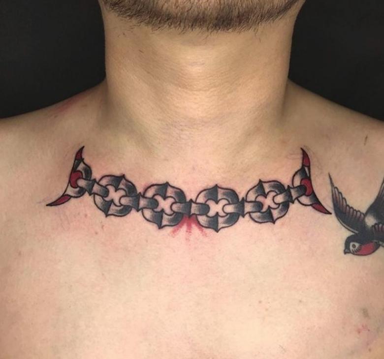 Ils sont appliqués comme une véritable chaîne de bijouterie au cou, aux clavicules, autour des chevilles et sur les poignets. Aujourd'hui, les hommes ne sont pas les seuls à pouvoir se vanter de ce tatouage : des chaînes qu'il n'est pas nécessaire de mettre et d'enlever constamment sont également attachées aux femmes.