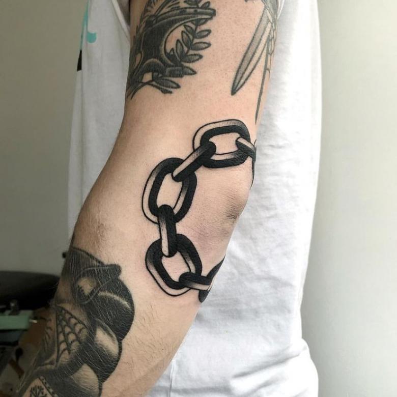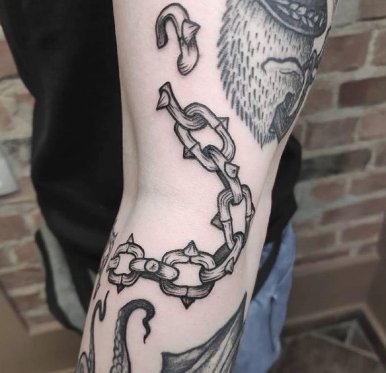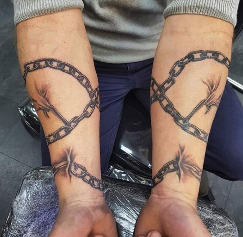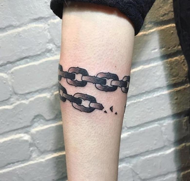 Un tatouage sous forme de chaînes n'était auparavant courant que chez les prisonniers. C'est un symbole des entraves et du manque de liberté. C'est un symbole de la nature illimitée et impitoyable de la vie.