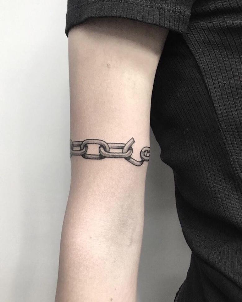 C'est le genre de tatouage qui plaît à ceux qui pensent que les gens sont otages du temps. Ou encore, il suggère que le temps est la chose la plus précieuse que nous ayons et qu'il est directement lié à la vie humaine. Dans le cas où un ou plusieurs maillons de la chaîne sont brisés, le tatouage peut signifier que son propriétaire se débarrasse d'un attachement ou d'une habitude vicieuse. Quelques autres interprétations de cette variante sont la victoire sur soi-même, la perte d'un mentor ou d'un ami proche.