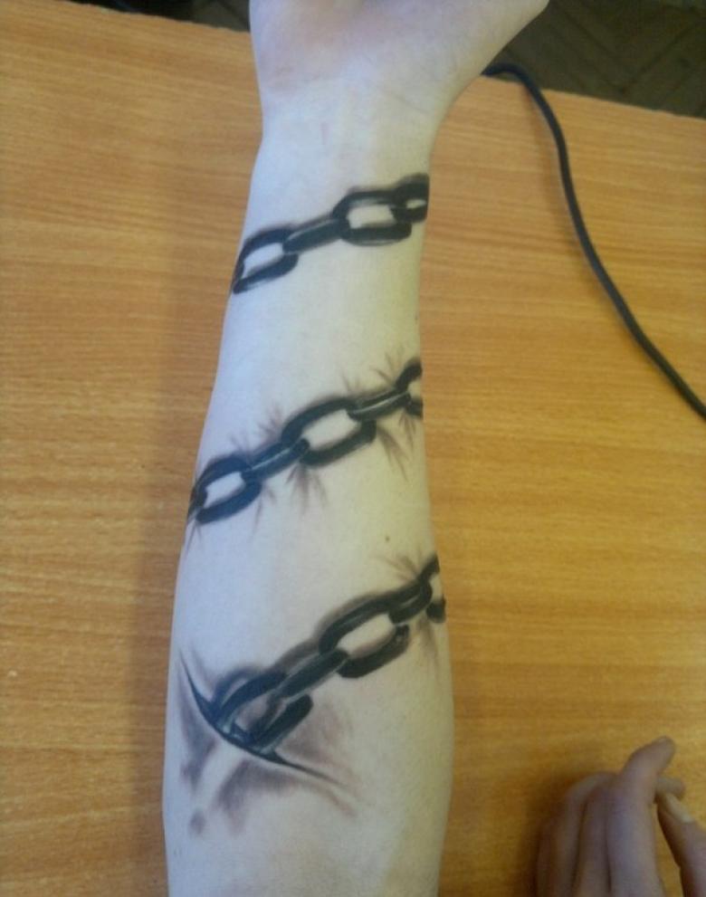 Chaîne de tatouage - significations, photos intéressantes sur le bras, le cou, la jambe, la poitrine, le poignet, croquis