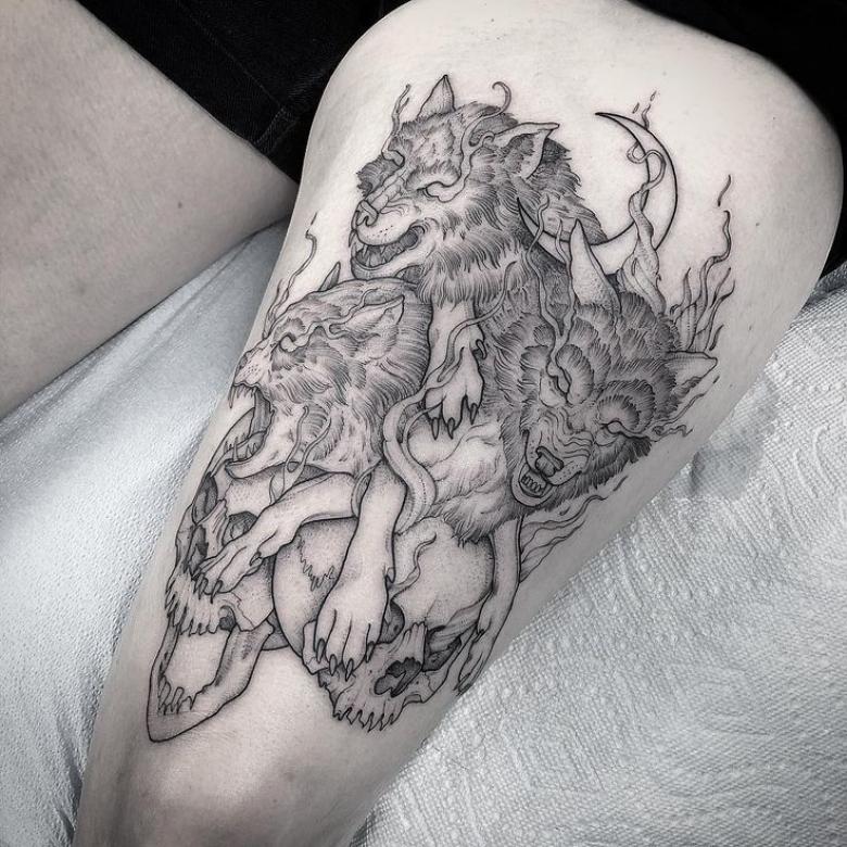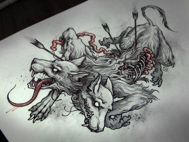Tattoo Cerberus - description complète, signification, dessins et idées de photos