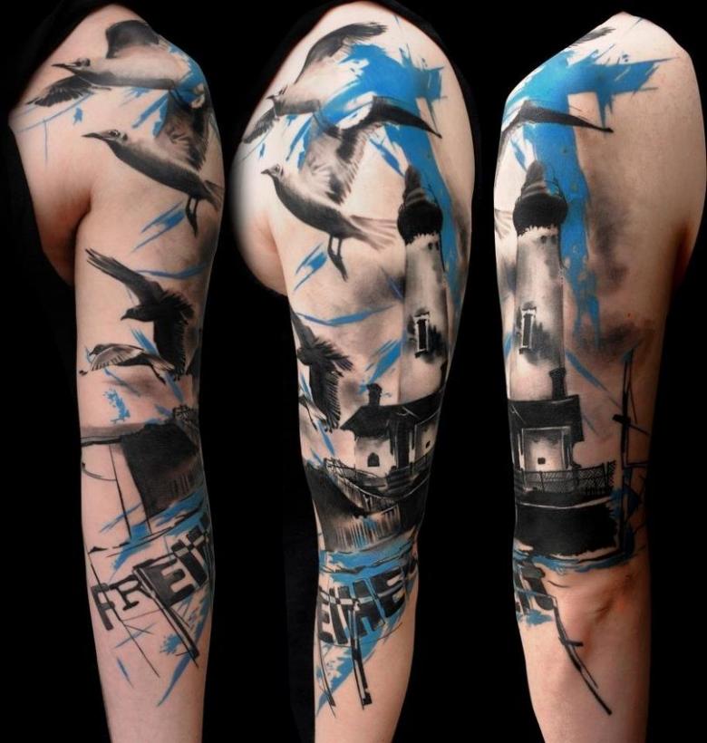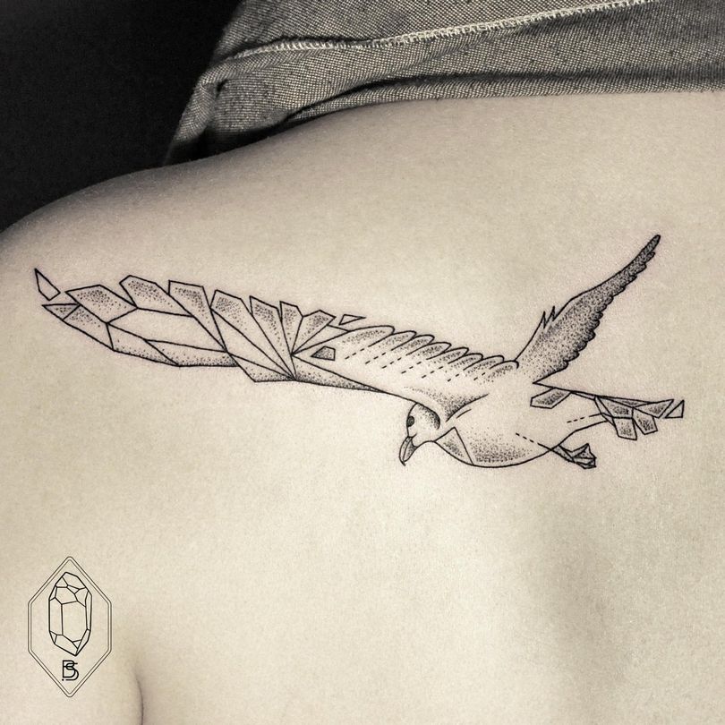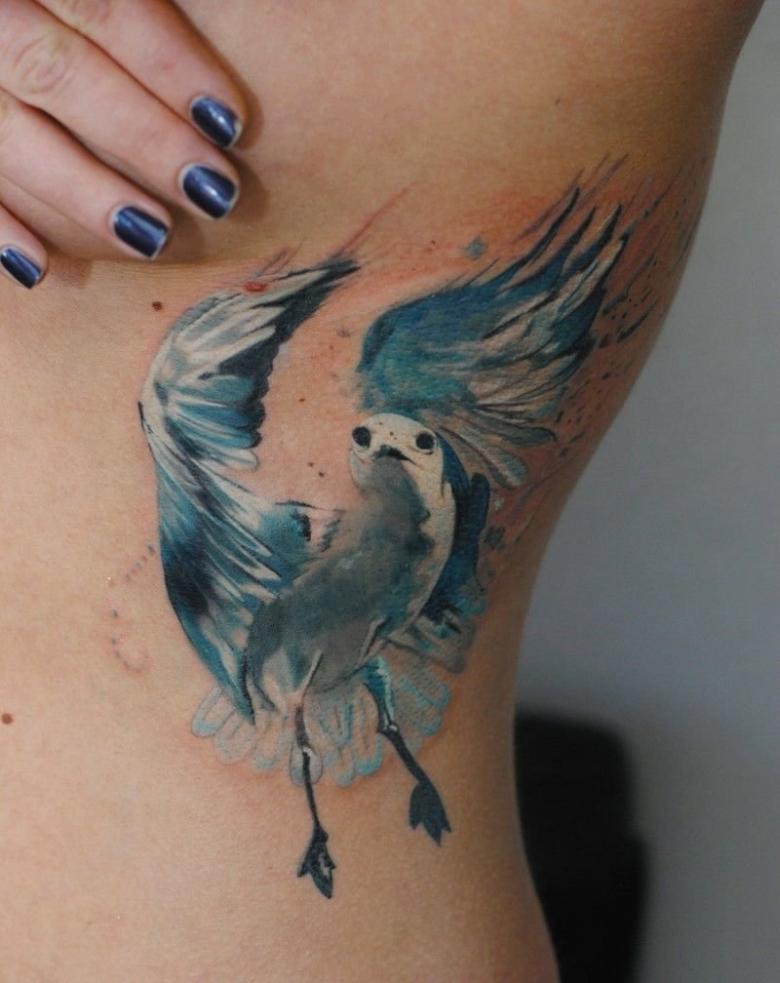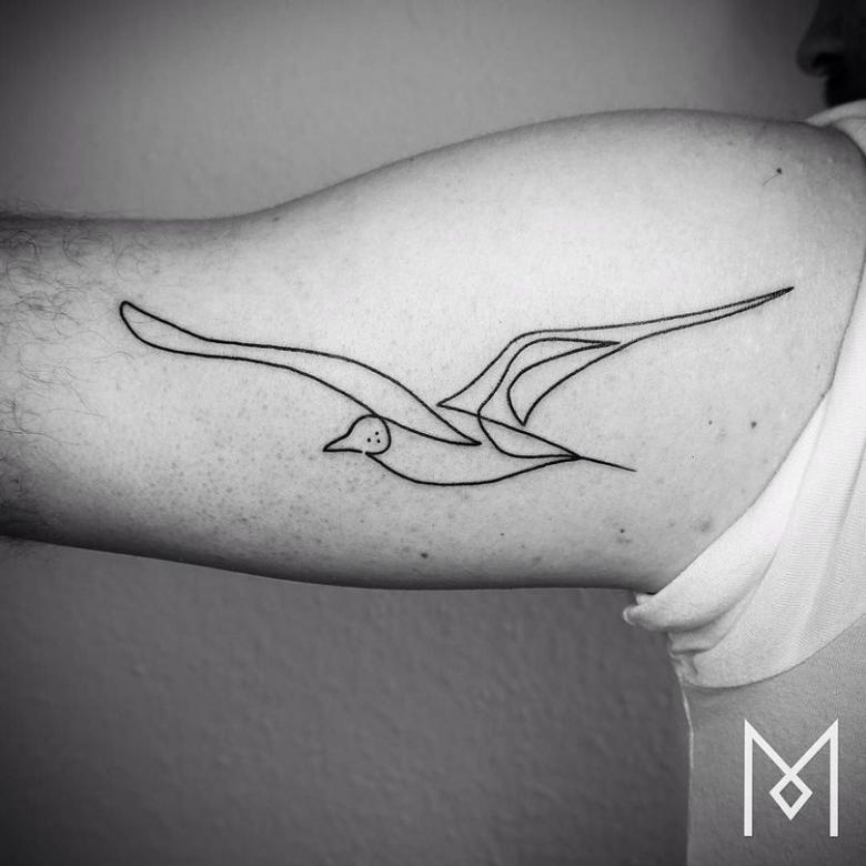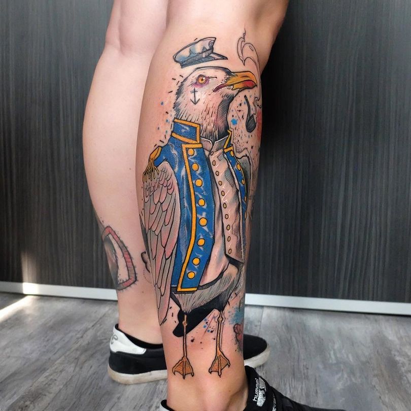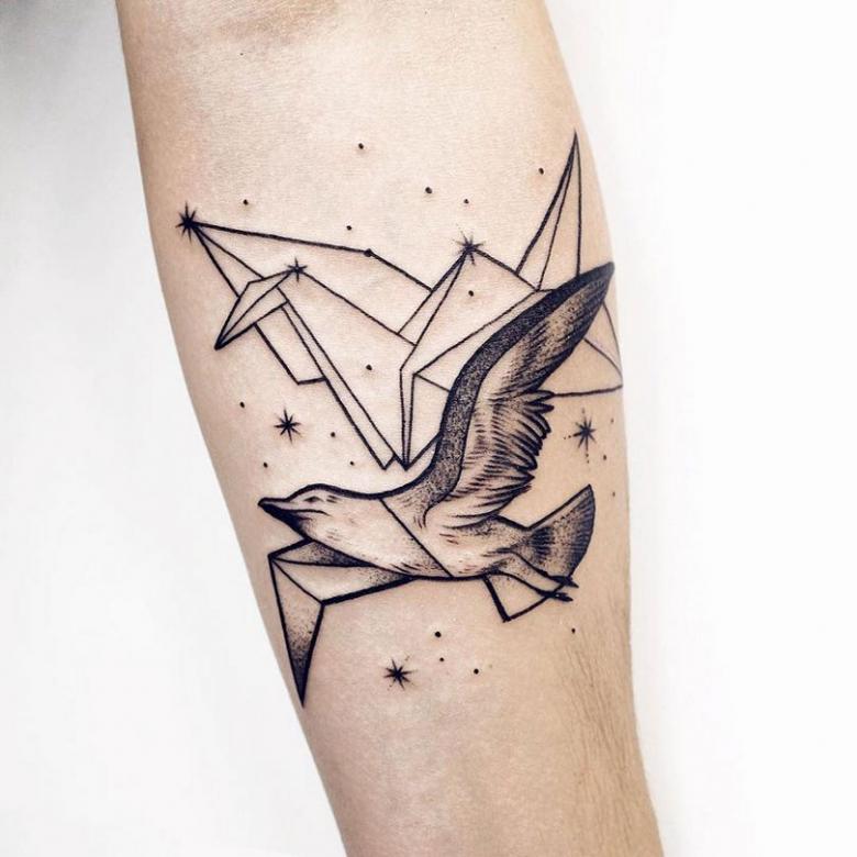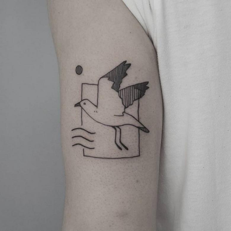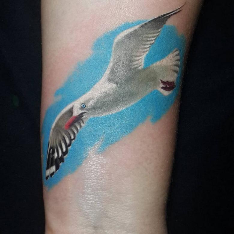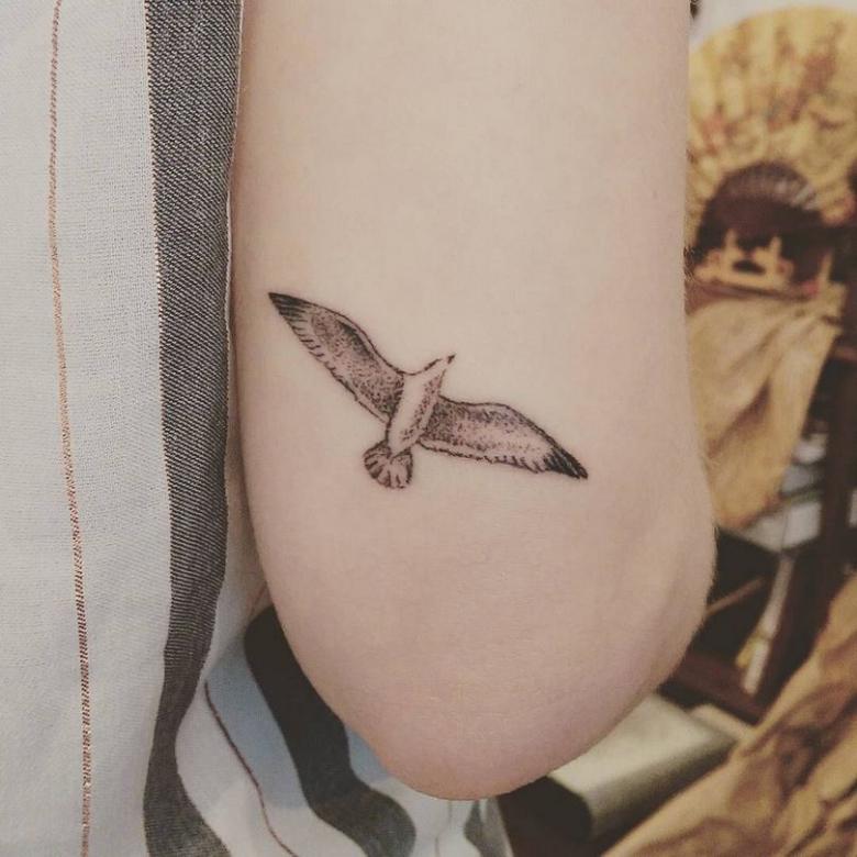 Tatouage mouette - significations pour les filles et les hommes, où l'appliquer (sur le bras, le poignet, la clavicule, le pied), motifs intéressants, photos.