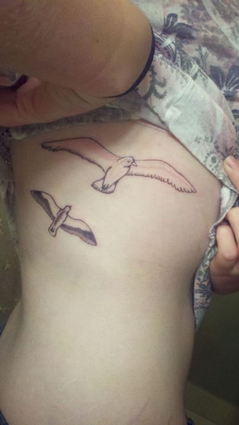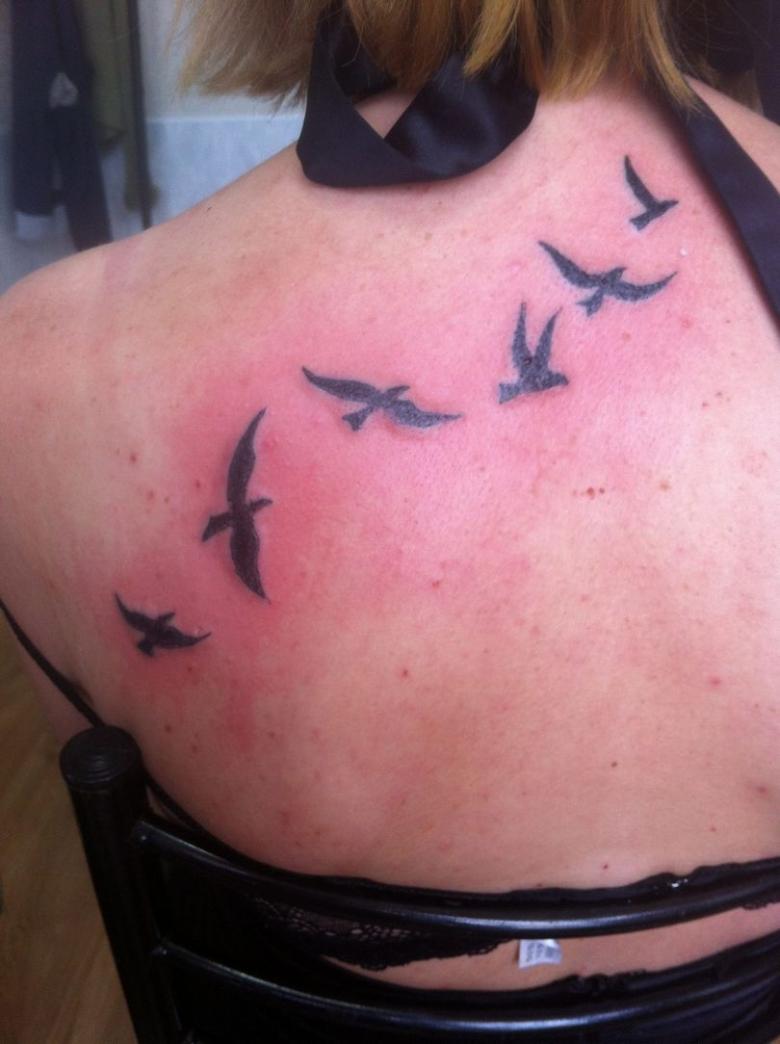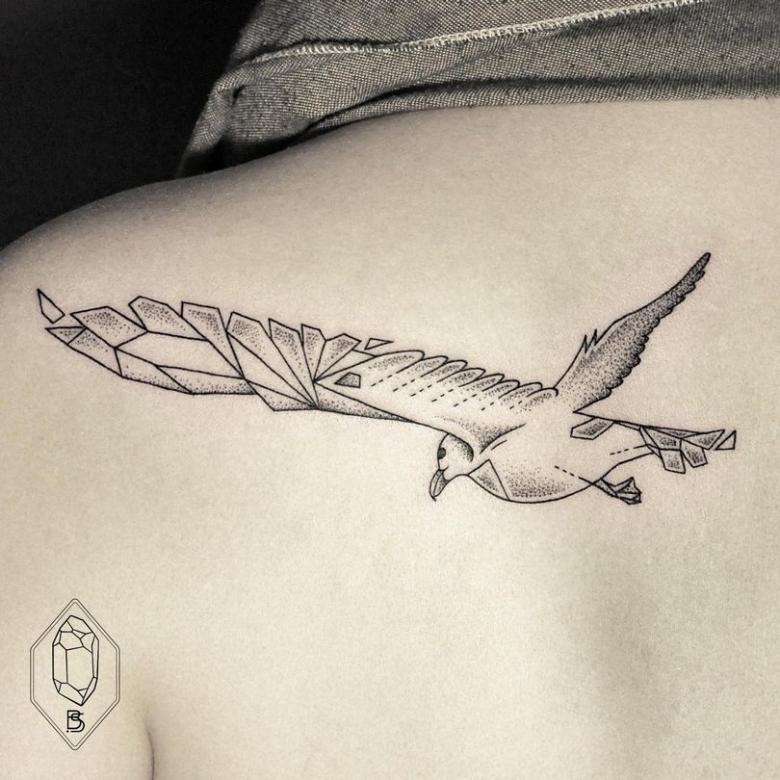 La plupart des tatouages sont réalisés sur le dos, le bas du dos et la zone des omoplates. Les femmes originales font souvent un rembourrage sur le thème de la mouette, de la mer, du soleil dans la zone de la poitrine ou sous les seins. Il est également possible de réaliser une version du grand oiseau, où il occupe tout le dos et où ses ailes reposent confortablement sur les épaules.