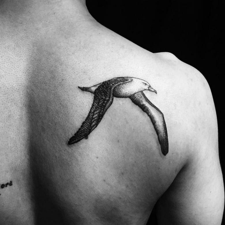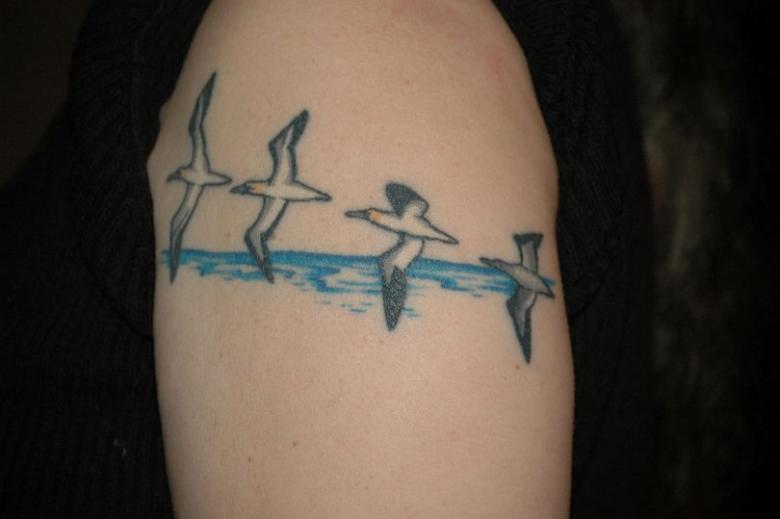 Les pêcheurs avaient l'habitude de le mettre comme amulette de bonne chance dans leur travail. De la même manière que les oiseaux de mer reviennent à la maison avec une riche prise, les pêcheurs doivent ramener beaucoup de poissons. Ce tatouage est un symbole de leur chance et de leur stabilité dans le métier qu'ils ont choisi.