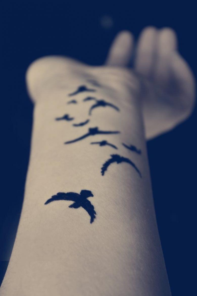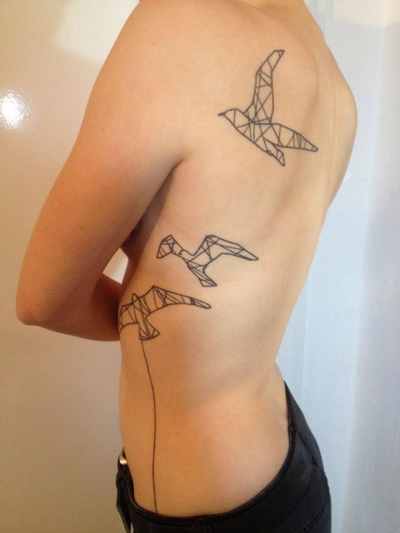 Au départ, ce type de tatouage était destiné aux personnes dont le métier était lié à l'eau et au risque - marins, flibustiers, pêcheurs. Ils l'appliquaient comme un rappel de leur patrie, qu'en tant qu'oiseaux migrateurs, ils devaient retourner chez eux. C'est une nostalgie de leur patrie, de leur famille. C'est le signe que, en tant qu'oiseau libre, ils peuvent s'envoler de chez eux à tout moment.