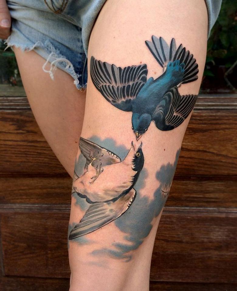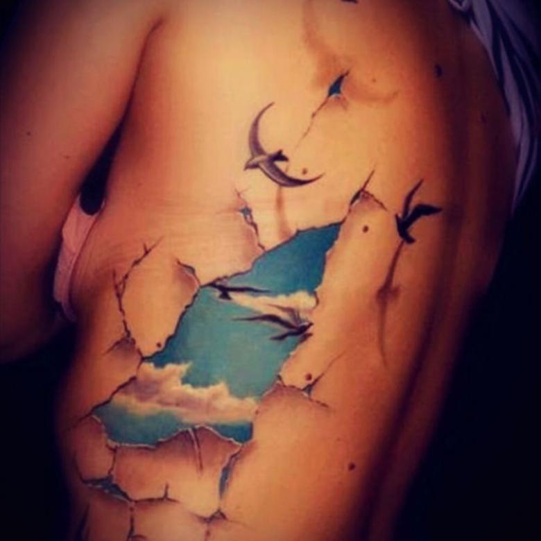 Vous voulez épater votre entourage avec un tatouage inhabituel ? Vous pourriez faire le ciel qui éclate à travers votre peau et des oiseaux libres qui s'envolent de là. Un signe de la liberté de l'esprit par rapport aux conventions philistines. Vous souhaitez modifier un motif que vous avez tatoué depuis longtemps ? C'est tout à fait possible ; vous pouvez superposer une image vieillie à une image colorée et moderne. Envisagez également pour vous-même une variante de rembourrage unique - une que personne d'autre que vous connaissez n'aura. Voici quelques options en un coup d'œil :