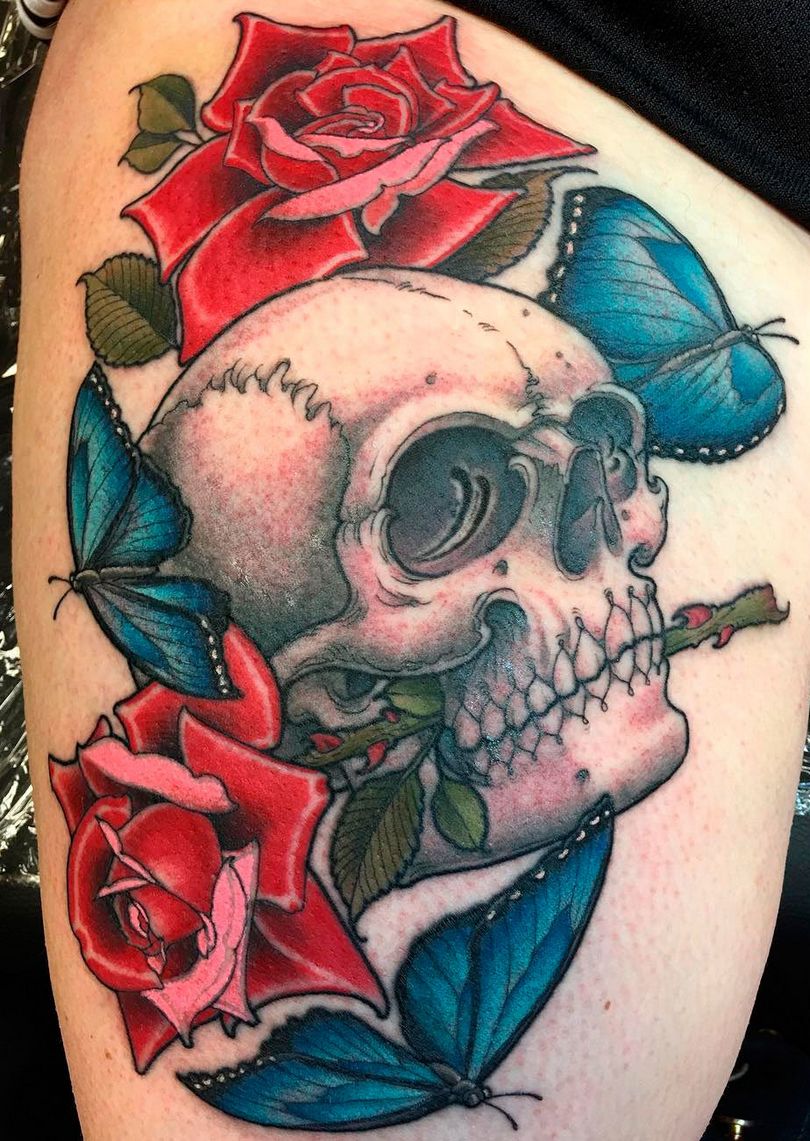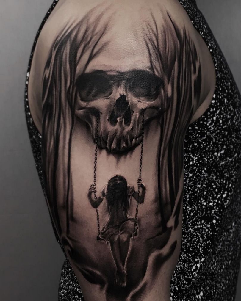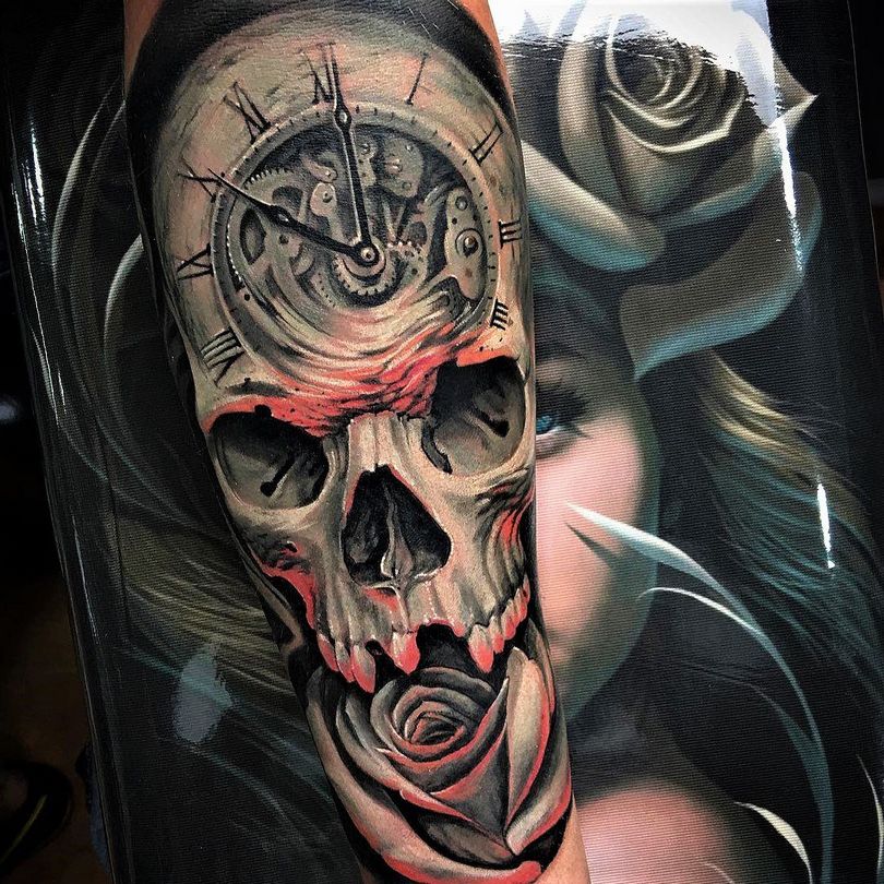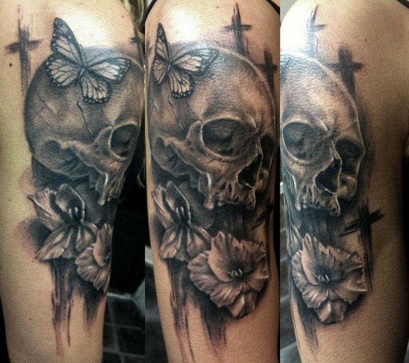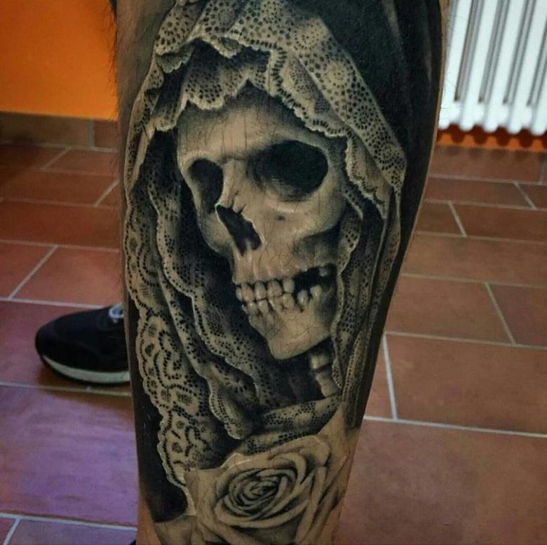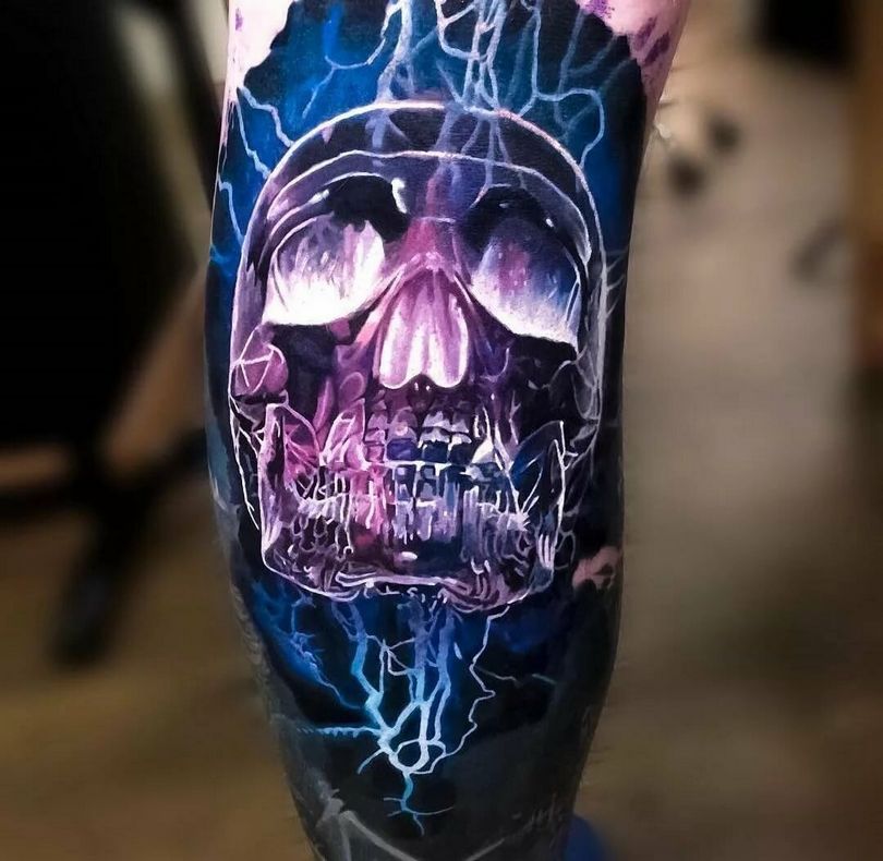 Un crâne est un élément intéressant et distinctif. Il peut être épinglé seul ou inséré dans une composition complexe. Le résultat est une image symbolique au sens profond, qui permet à la personne de révéler son caractère, de raconter sa vie, son destin et ses rêves.