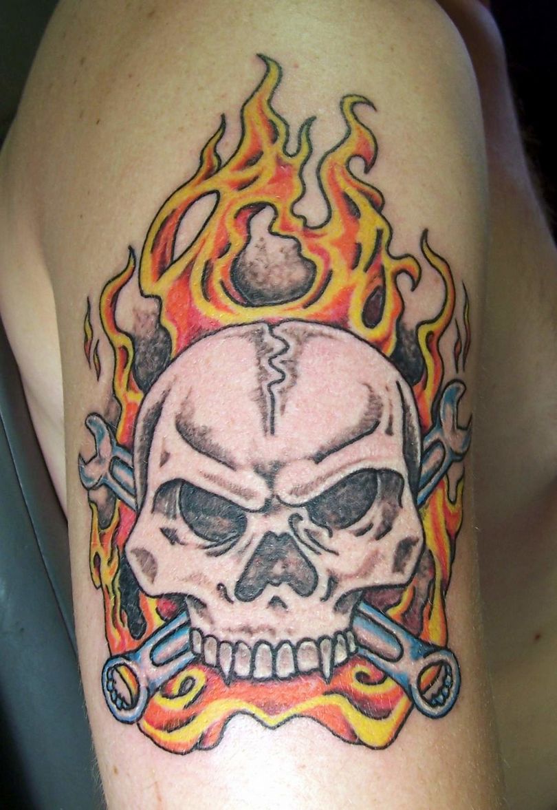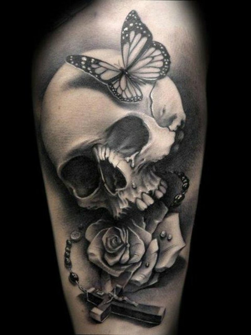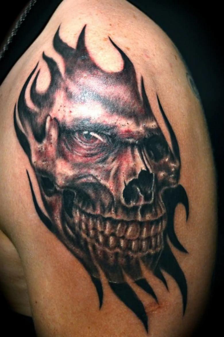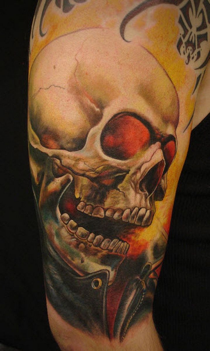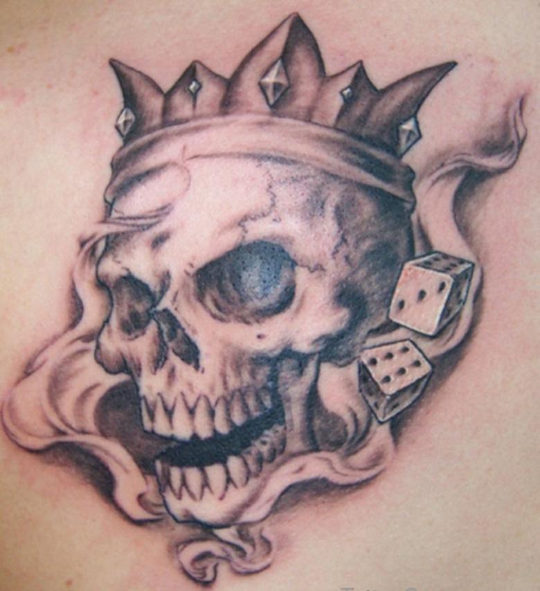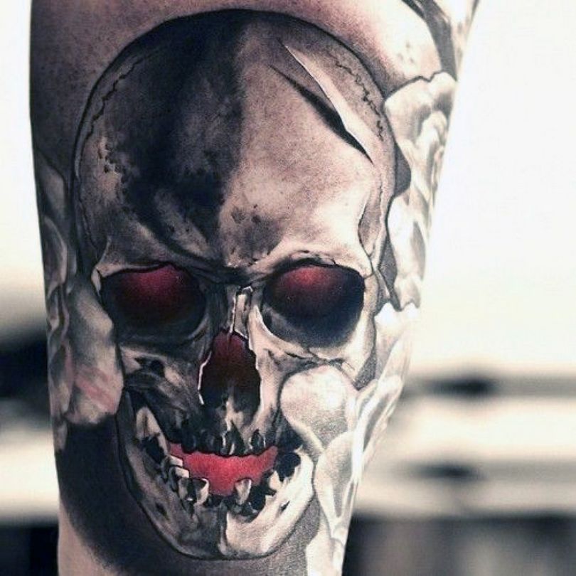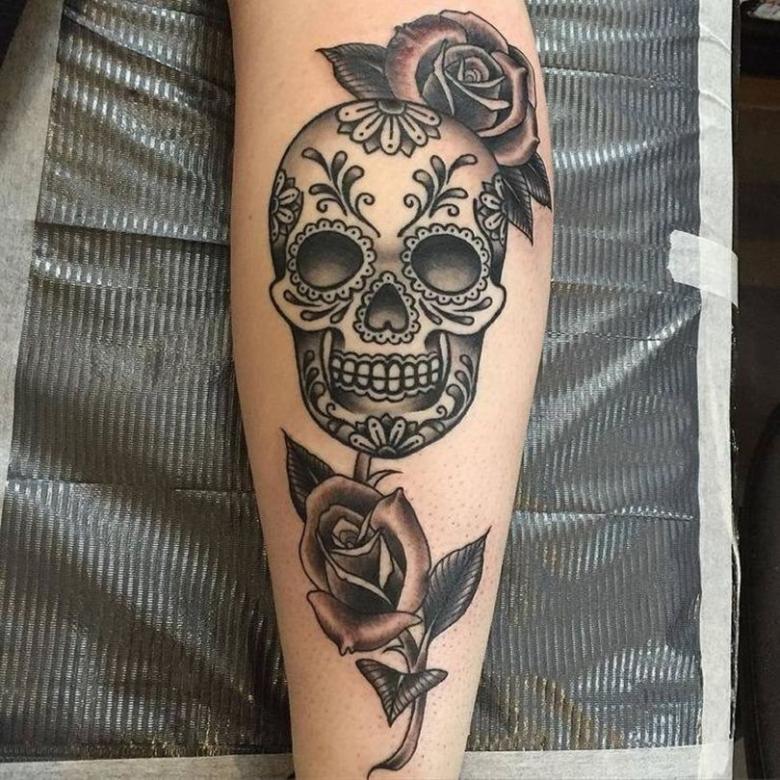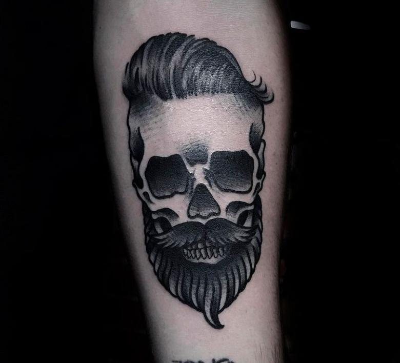 Pour les hommes, ce n'est pas l'esthétique qui compte, mais la signification symbolique du tatouage. Ils choisissent l'image d'un crâne pour souligner leurs qualités brutales, leur courage et leur ténacité. Il fait généralement partie d'une composition plus complexe et est associé à un ou plusieurs éléments secondaires :