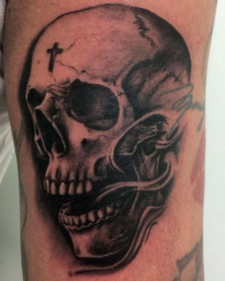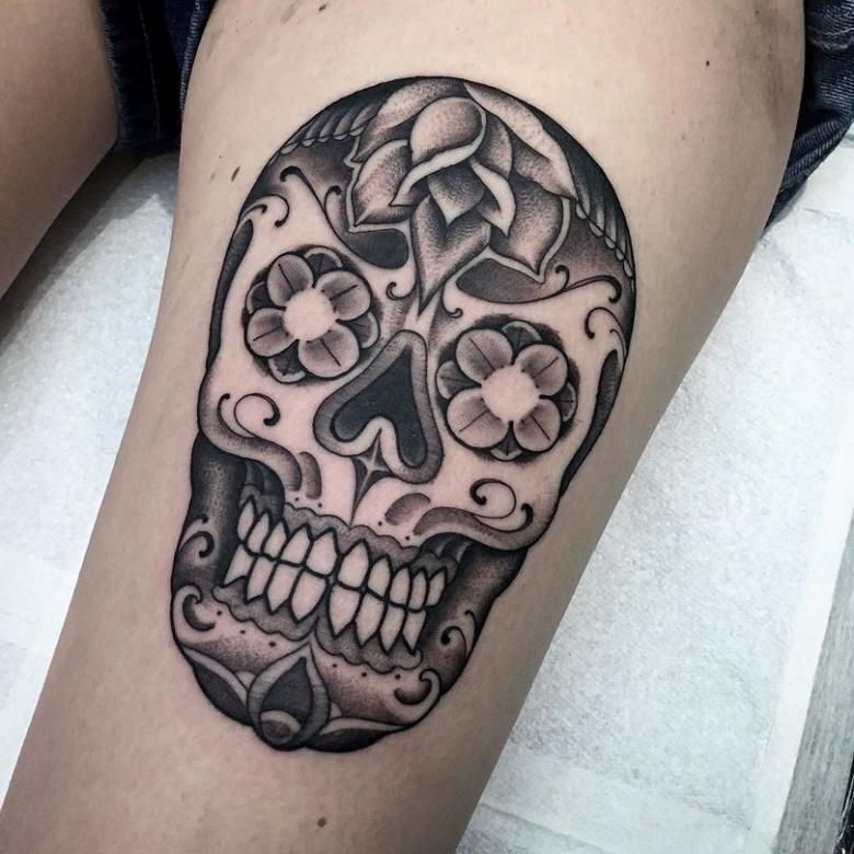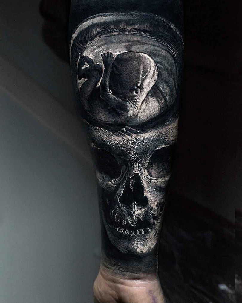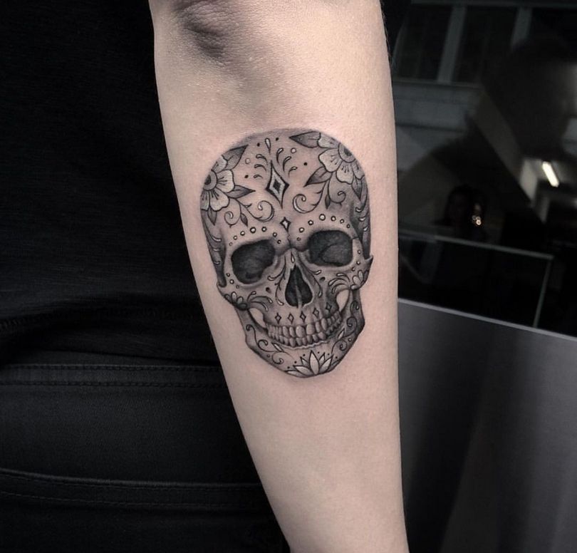 Tatouage tête de mort - interprétation, signification pour les hommes et les filles, lieu d'application (sur le bras, la main, l'épaule, le dos, la poitrine), photos et vidéos amusantes.