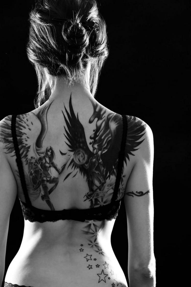 Ces tatouages sont associés à une énergie négative. Certains pensent que l'ange noir est un ange de la mort et qu'il peut apporter le malheur à une personne. D'autres peuvent choisir ces tatouages pour montrer qu'ils sont inarrêtables et qu'ils sont prêts à tout affronter. Certains peuvent être un signe occulte avec un sens caché. Dans la plupart des cas, ces tatouages sont liés à la vie spirituelle du porteur.