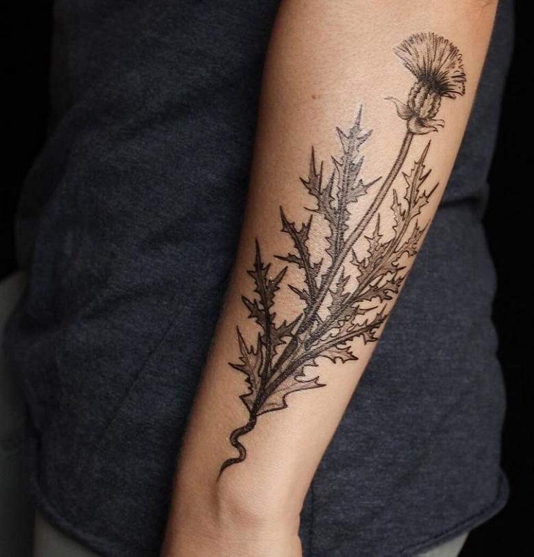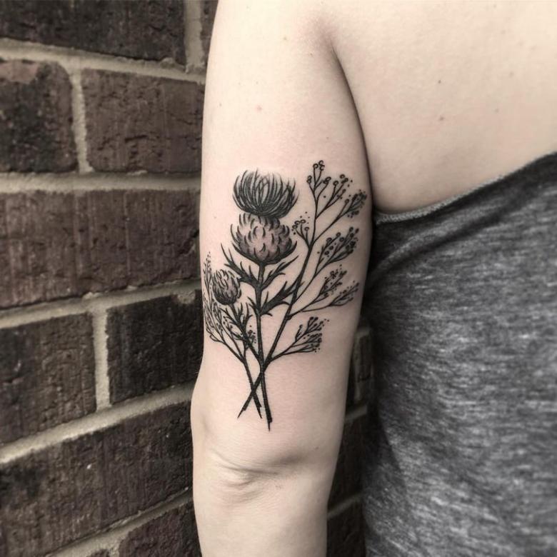 Tatouage chardon - significations pour les filles et les hommes, symbolisme, dessins intéressants