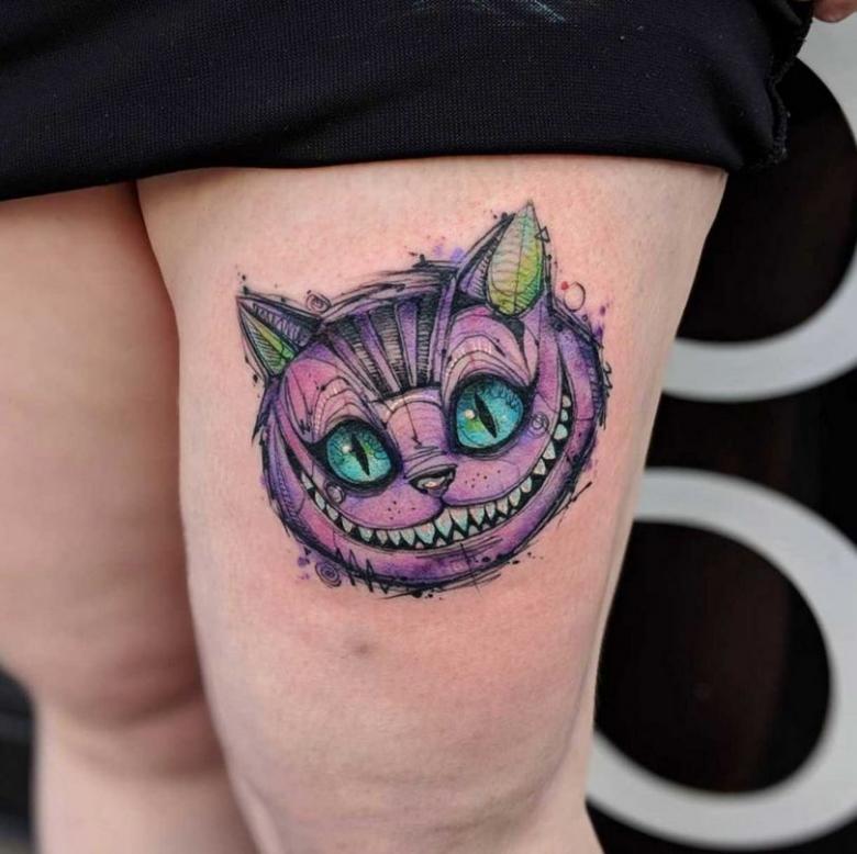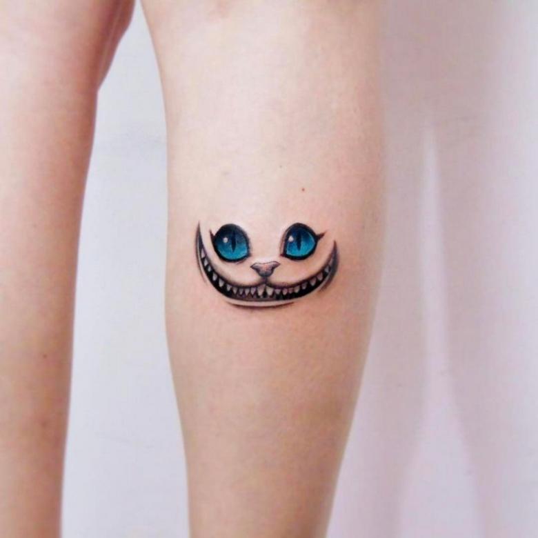 Le tatouage peut représenter le chat du Cheshire dans son ensemble, ou seulement sa tête, ce n'est pas important. Ce qui compte, c'est que son sourire ait l'air authentique, sincère. La seule chose dont il faut tenir compte lors du choix d'un croquis est l'endroit où l'image sera appliquée. Il est important que l'image ait l'air organique à l'endroit choisi.