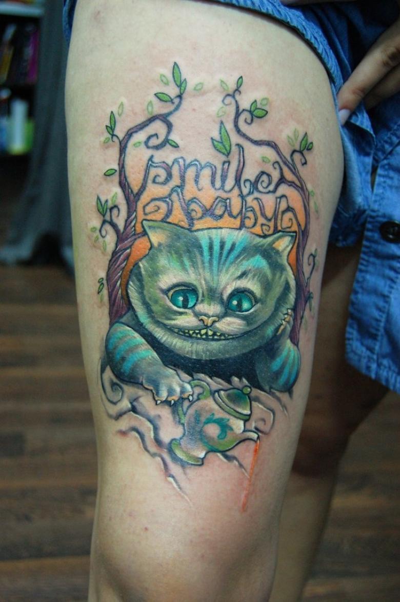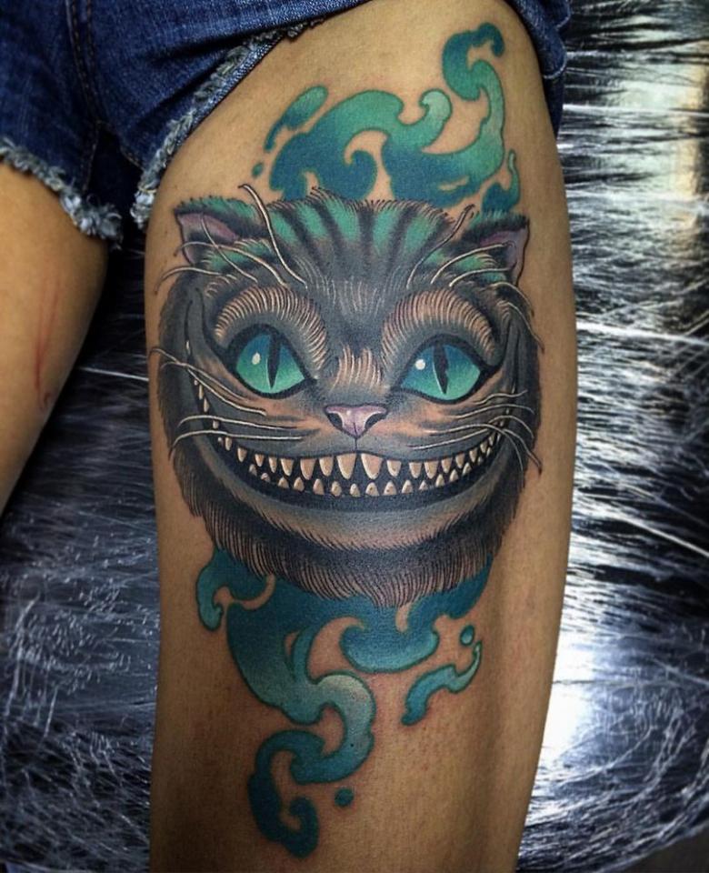 Le chat du Cheshire est une créature très mystérieuse et surprenante. C'est le chat au grand sourire auquel tout le monde peut s'identifier, et un tatouage de lui ou de son grand sourire est devenu très populaire auprès des tatoueurs.