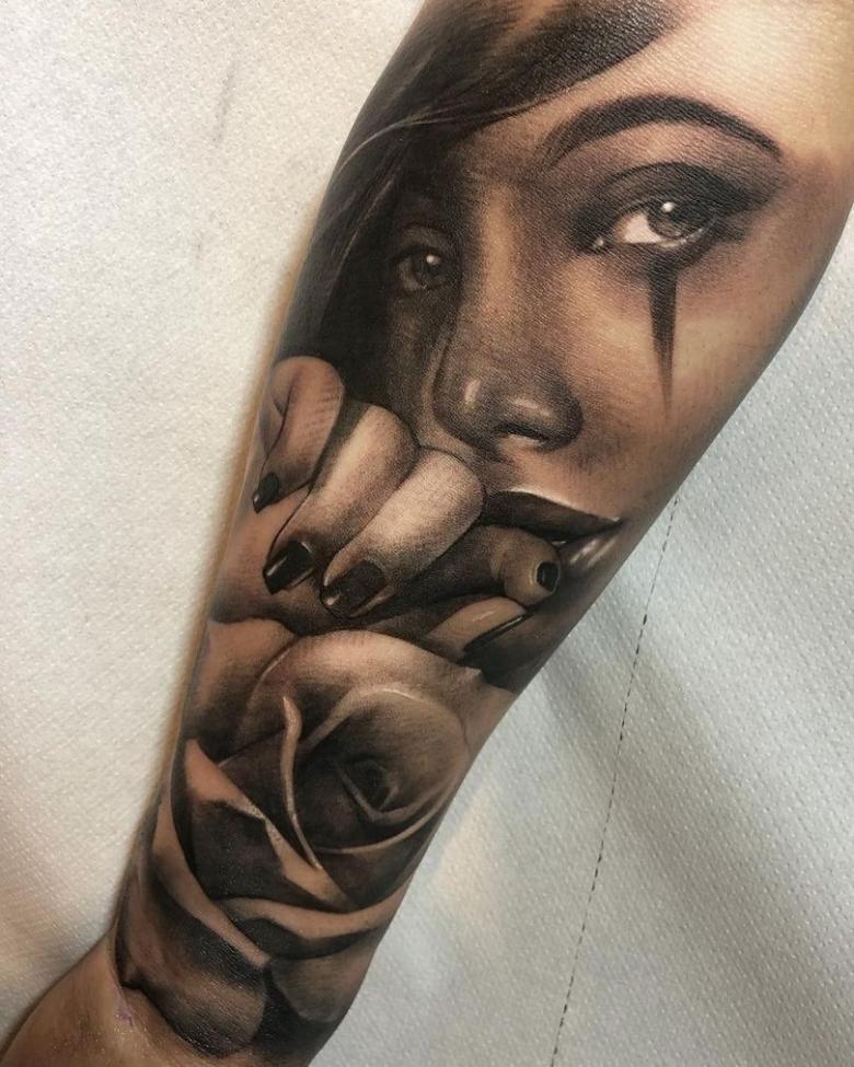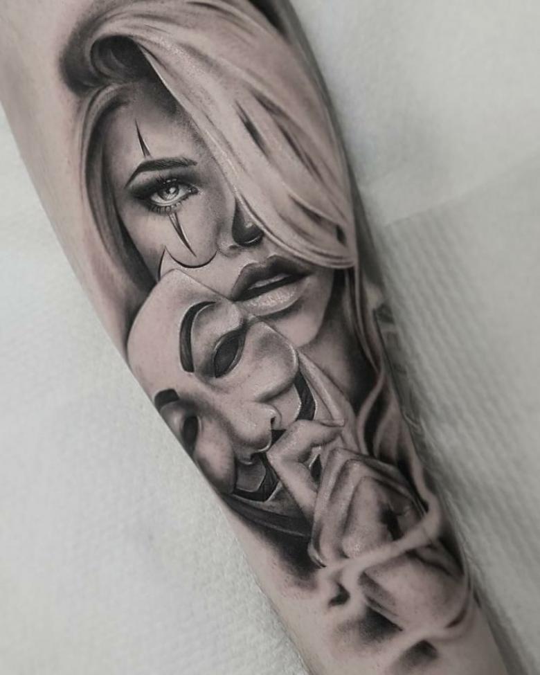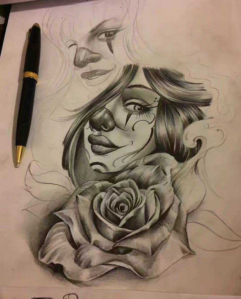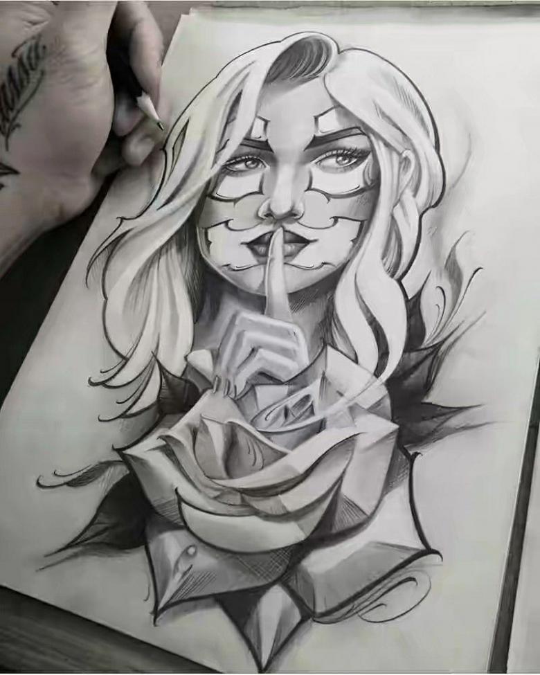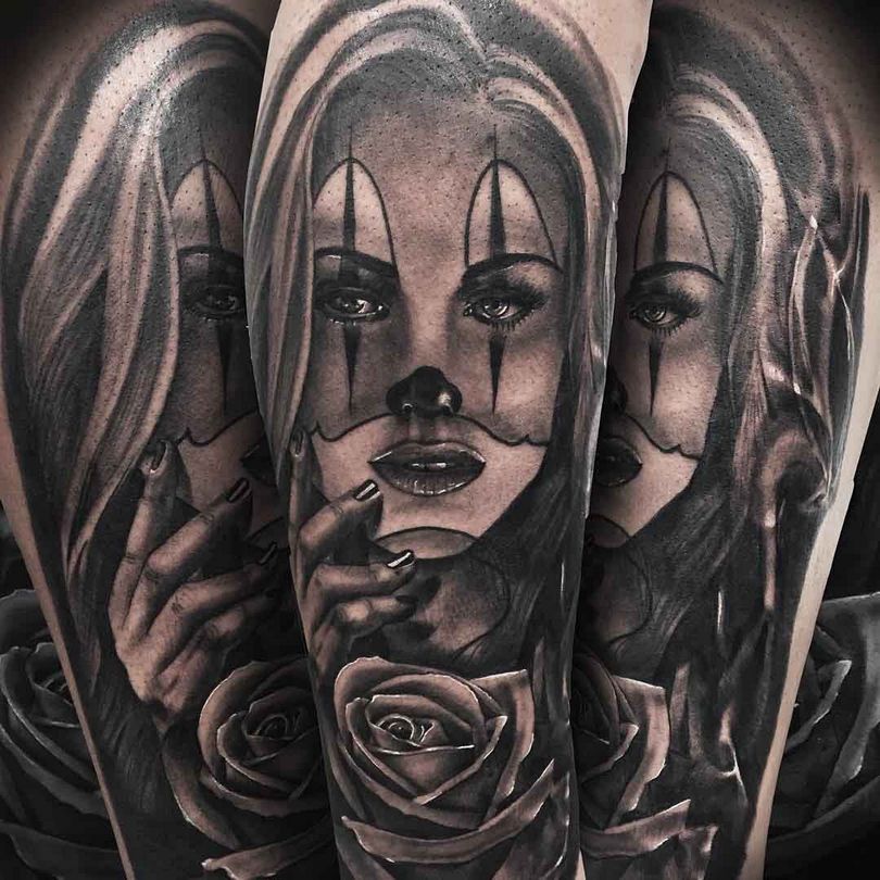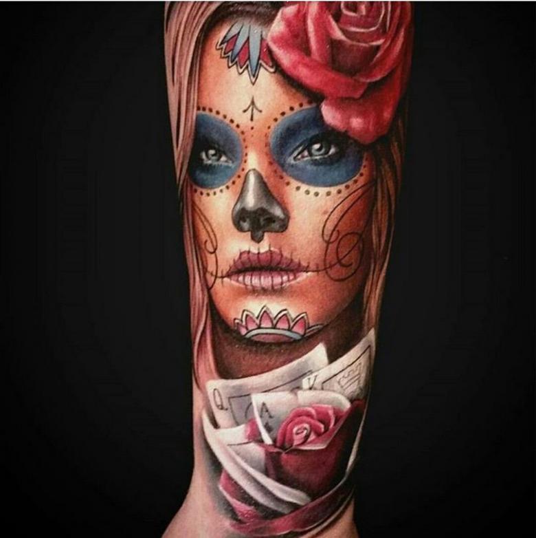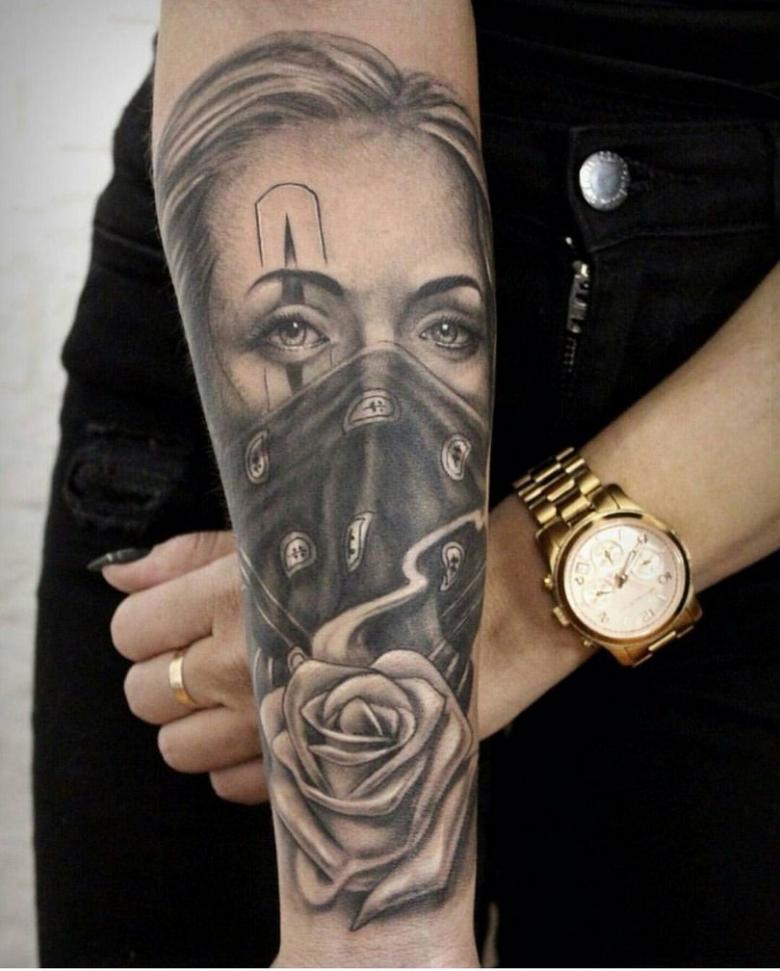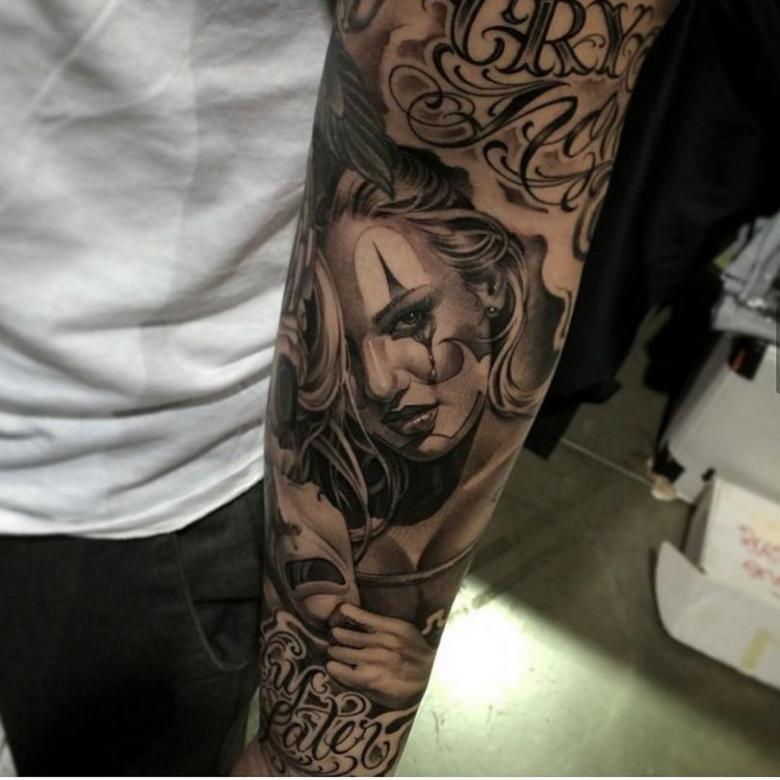 Tattoo Chicano - une description du style pour hommes et femmes, le lieu d'application (épaule, avant-bras, manche, sur le bras), les croquis originaux et des exemples de photos