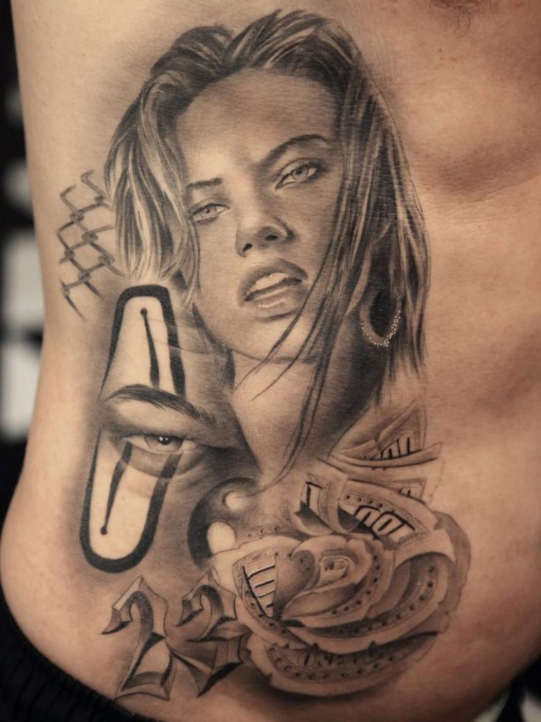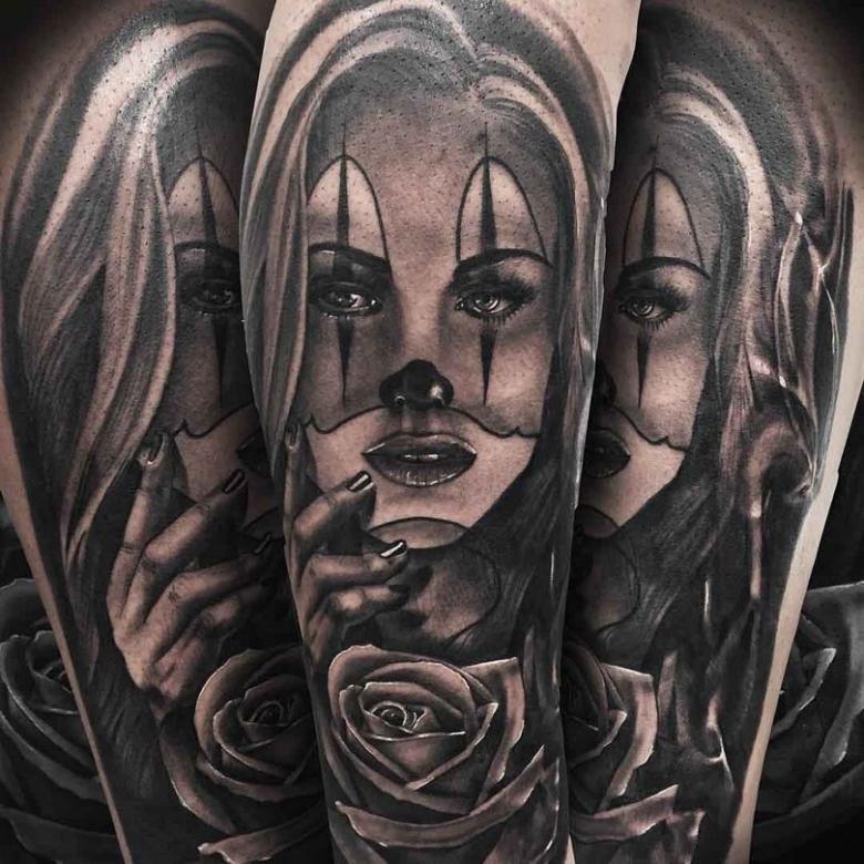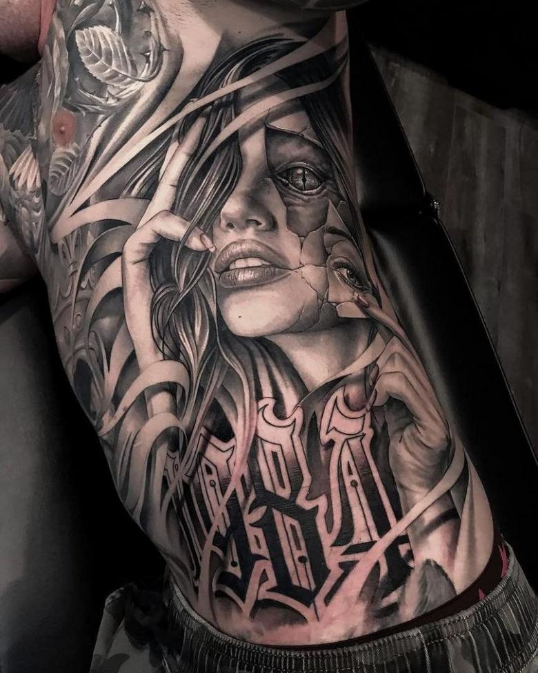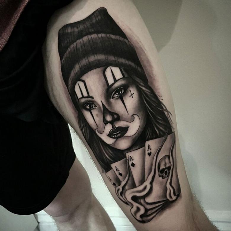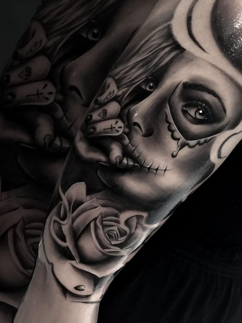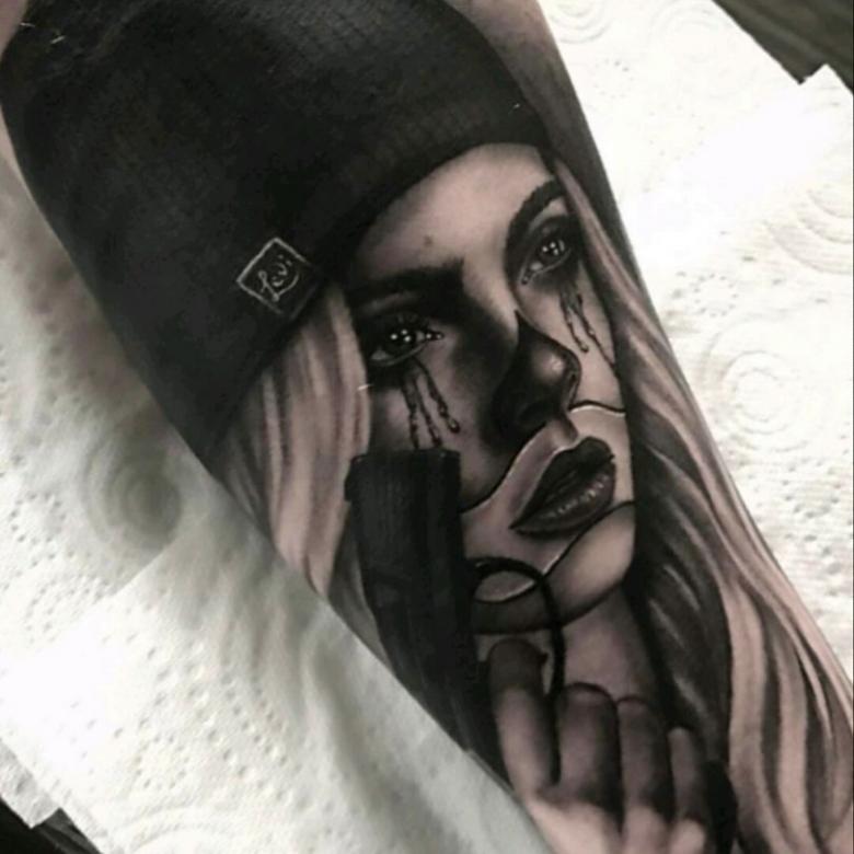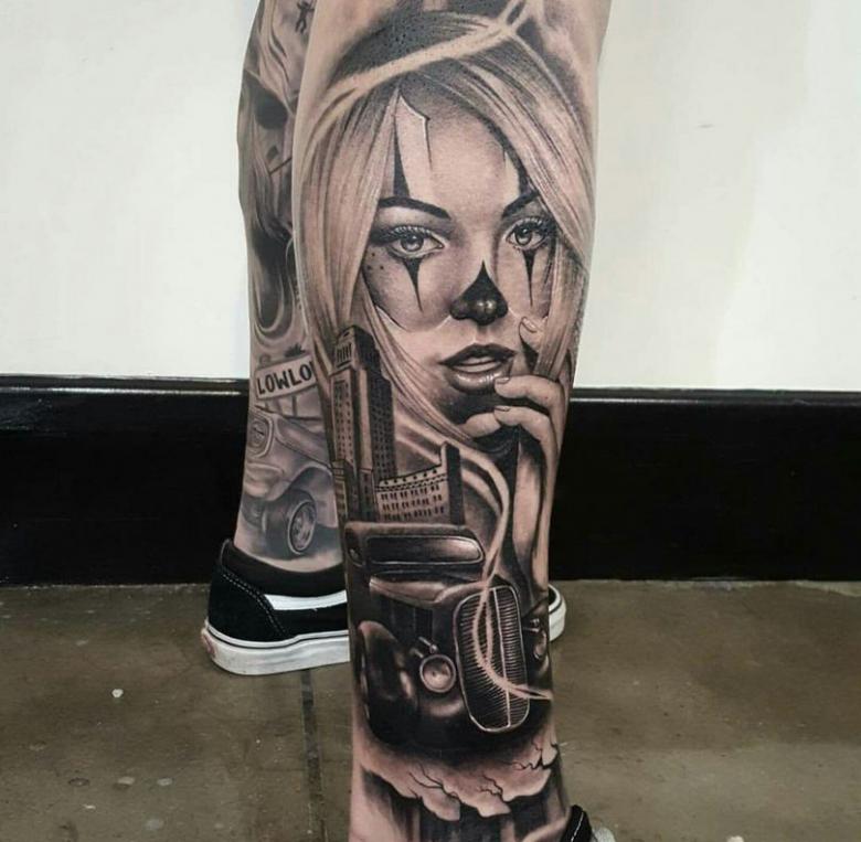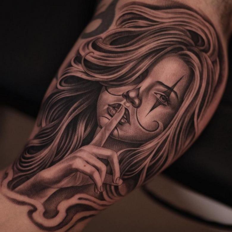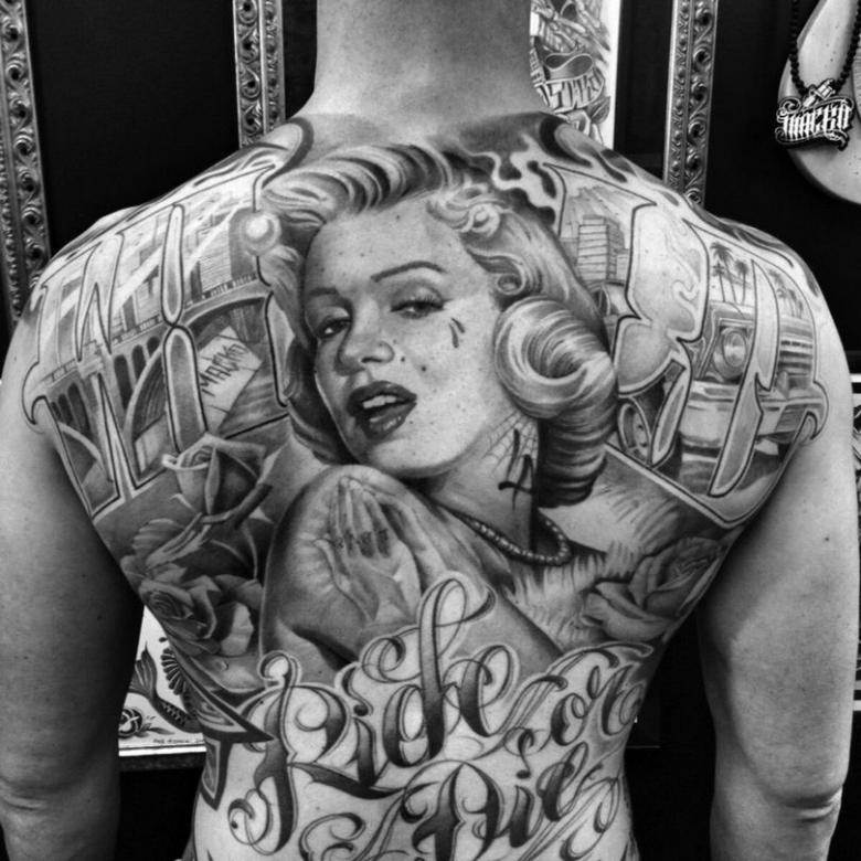 Chicano - une direction relativement jeune de l'art du tatouage qui est apparue au milieu du 20e siècle. Des sujets brutaux, détaillés et méticuleusement inscrits, ont rapidement gagné en popularité dans le monde entier. L'imagerie noire et grise est un rappel brutal des réalités de la vie, de l'inévitabilité du destin et de l'inévitabilité de la punition pour ses transgressions.