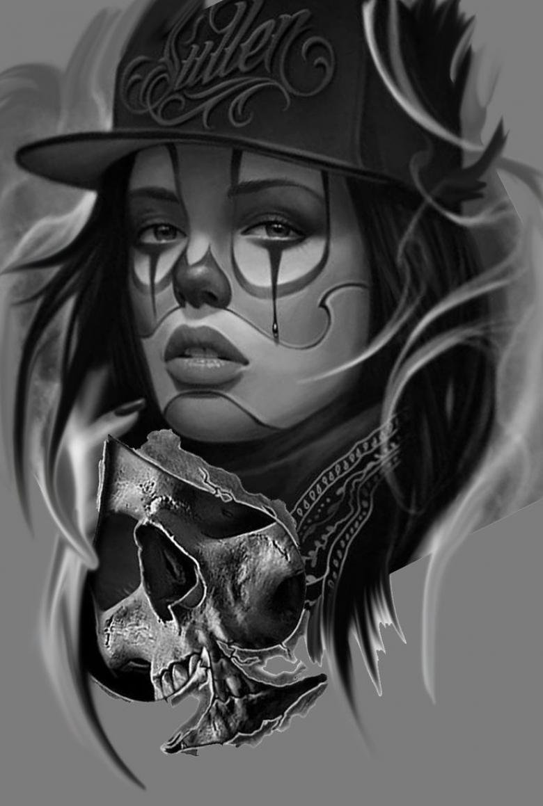 - Une image très populaire parmi les fans du style chicano est celle d'une fille morte guidant chacun des vivants vers la tombe. Pendant le jour des morts, qui est célébré nationalement au Salvador, au Guatemala, au Mexique et au Nicaragua, Clavera Katrina est le symbole principal. De nombreuses filles ornent leur visage d'un maquillage macabre, imitant des bouches et des orbites cousues. De nombreux tatoueurs se sont inspirés de cette image pour créer des motifs de style chicanier.