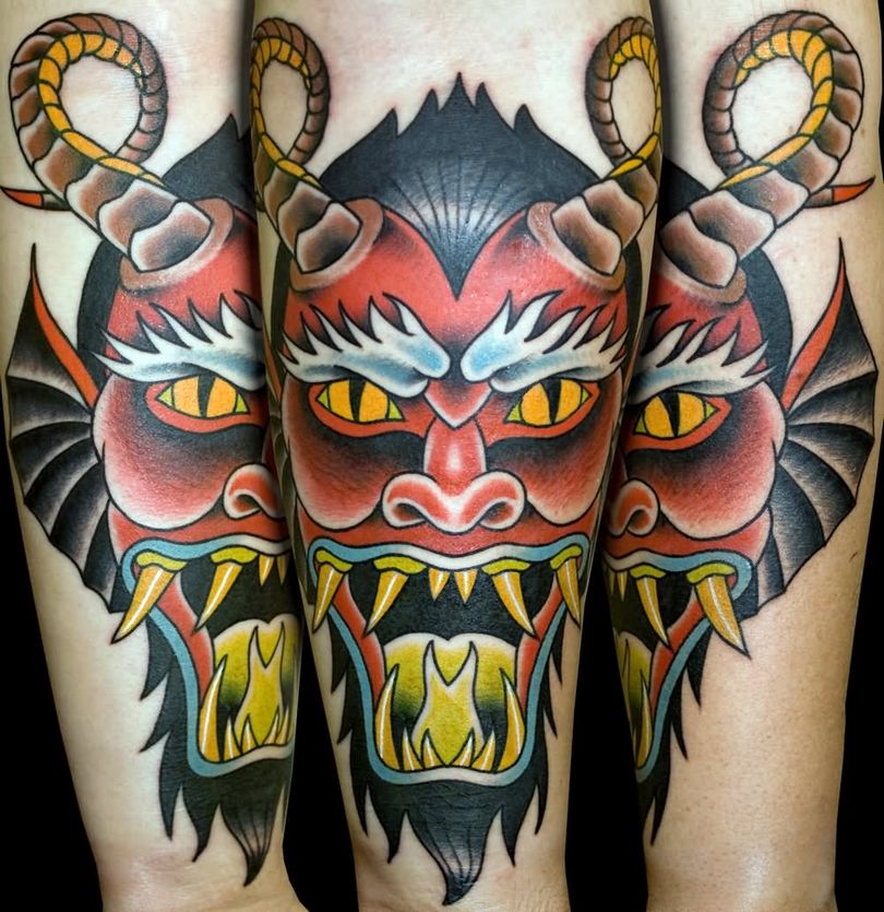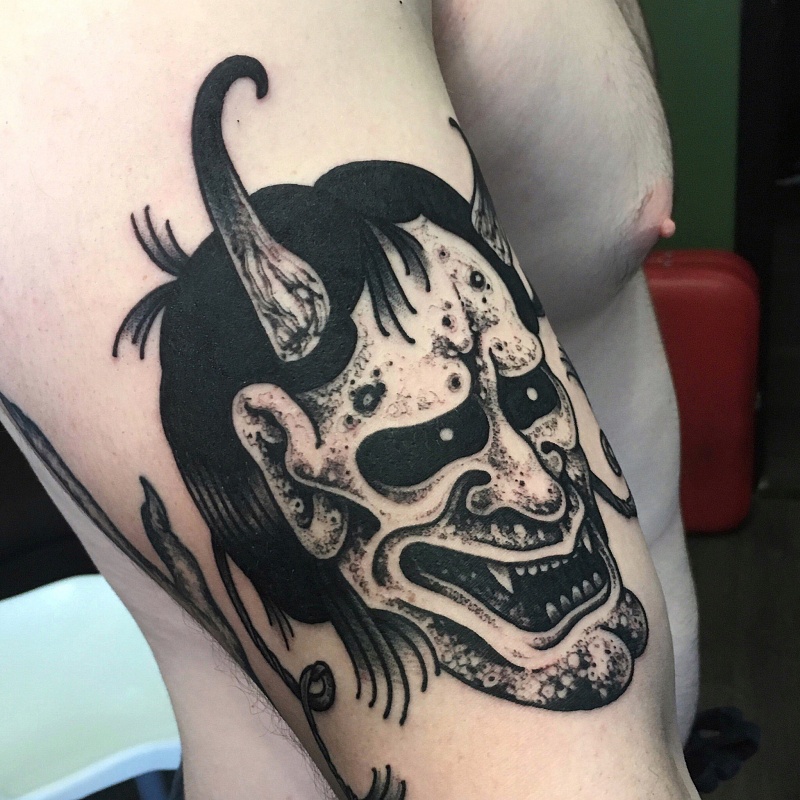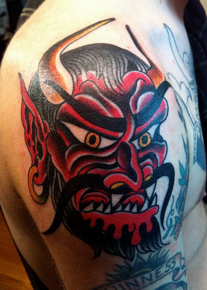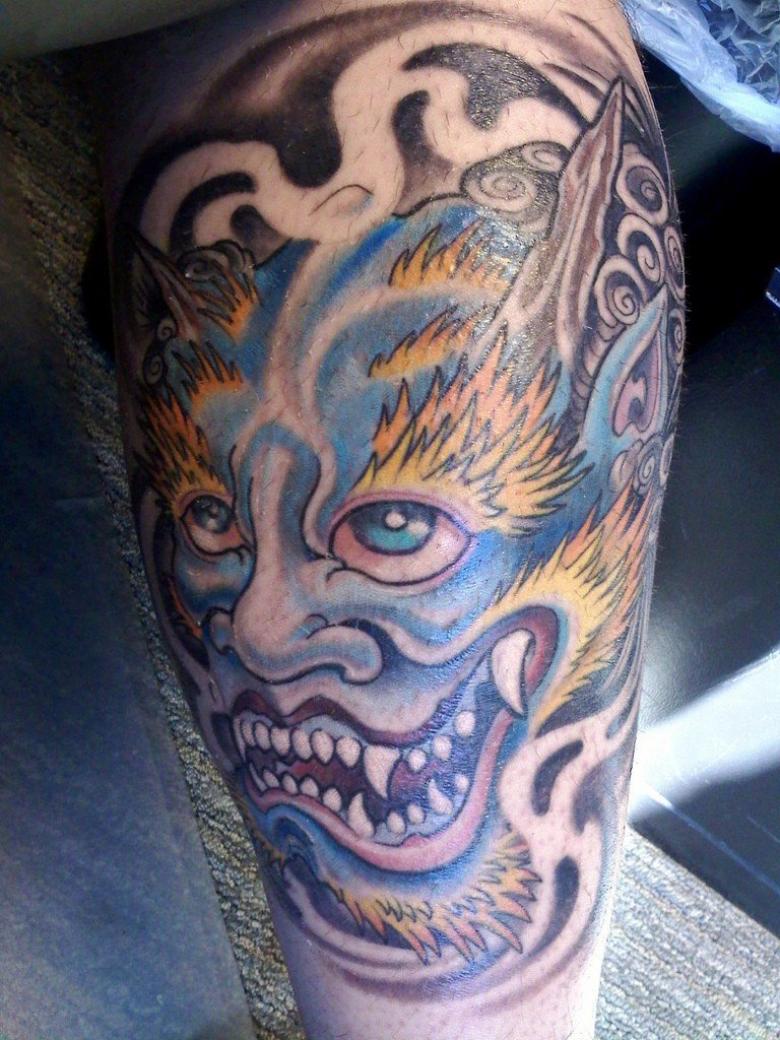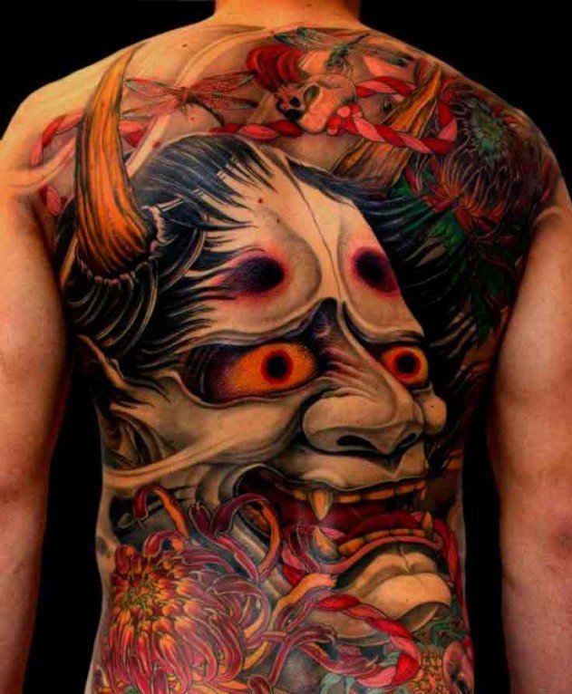 De nos jours, les démons de la mythologie asiatique jouissent d'une certaine popularité. Le style japonais se caractérise par des couleurs vives, avec des créatures mythiques représentées en vert, rouge ou bleu. Ils ont de grands crocs dans leur bouche. Ce type d'art corporel est destiné à protéger son porteur uniquement s'il est une bonne personne.