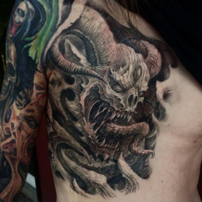 Tatouage démon - significations et motifs, placement (sur le dos, le bras, la poitrine), idées de photos impressionnantes