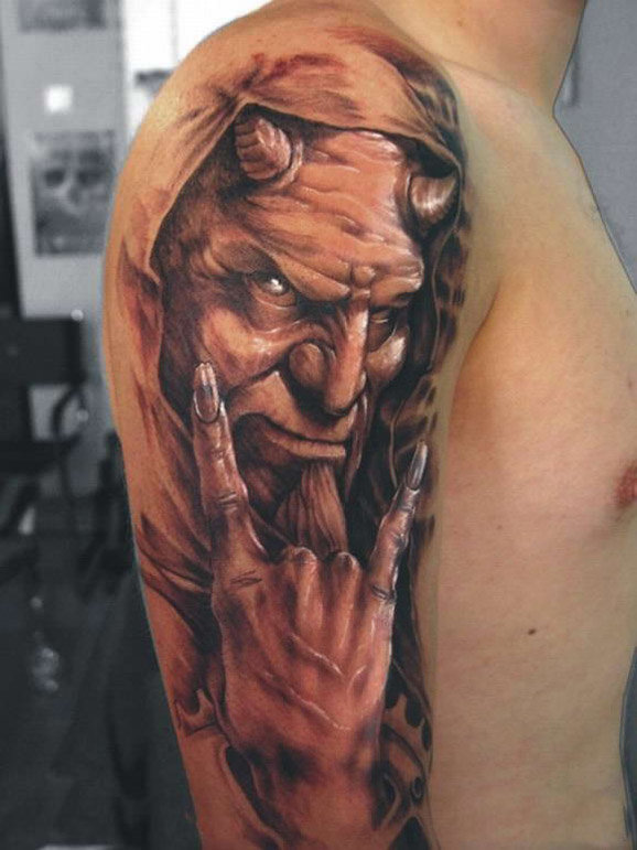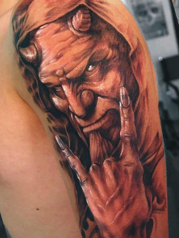 Les différentes cultures représentent les démons avec leur propre apparence et leur propre nom, mais tous sont des représentants du diable, des anges noirs et des ténèbres. Ces entités reflètent dans l'âme humaine les peurs personnelles et les tentations du péché. Estampillé sur son corps l'image d'un démon ne peut être qu'athée ou personne qui appartient aux courants religieux non classiques.