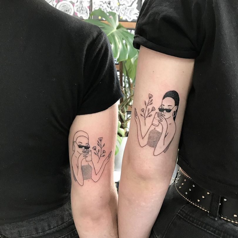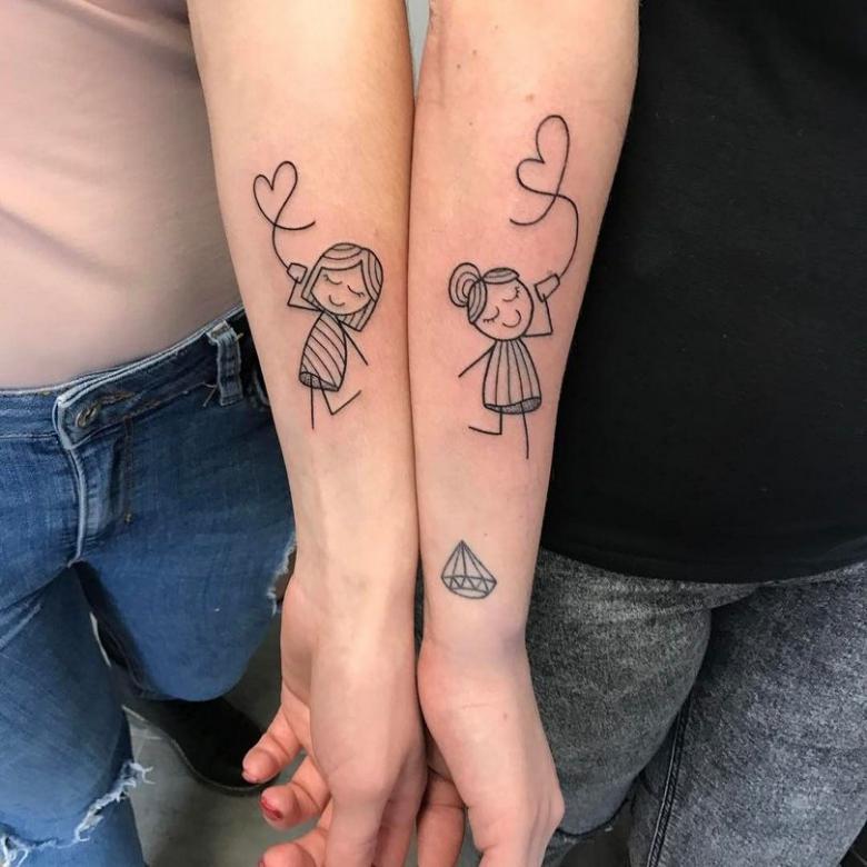 Les tatouages, dont l'intrigue se développe sur le corps des amis, sont devenus très populaires. L'amitié et l'affection mutuelle sont si fortes que les gens n'imaginent pas l'existence sans l'autre. Cela inclut les amis et les petites amies ainsi que les couples amoureux. Les émotions sont parfois si fortes que les gens sont prêts à immortaliser leur dévotion mutuelle sur leur propre corps, rendant ainsi leurs expériences publiques.