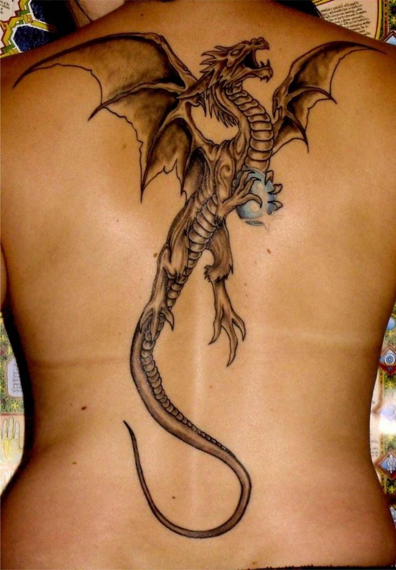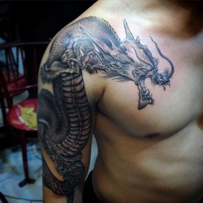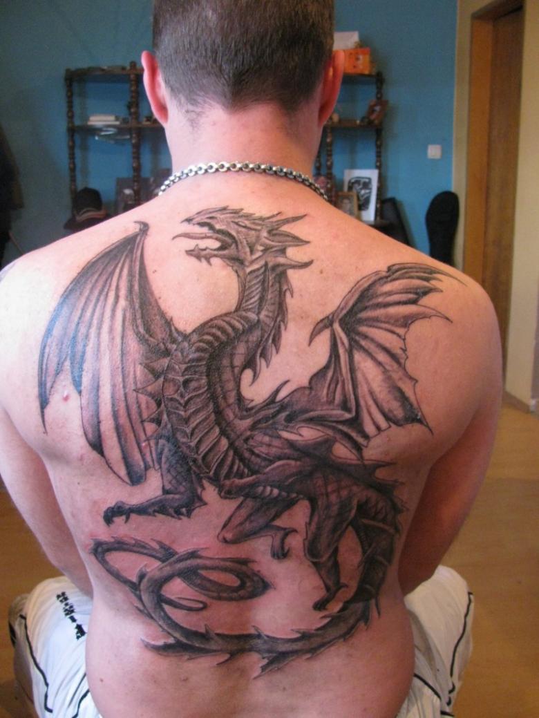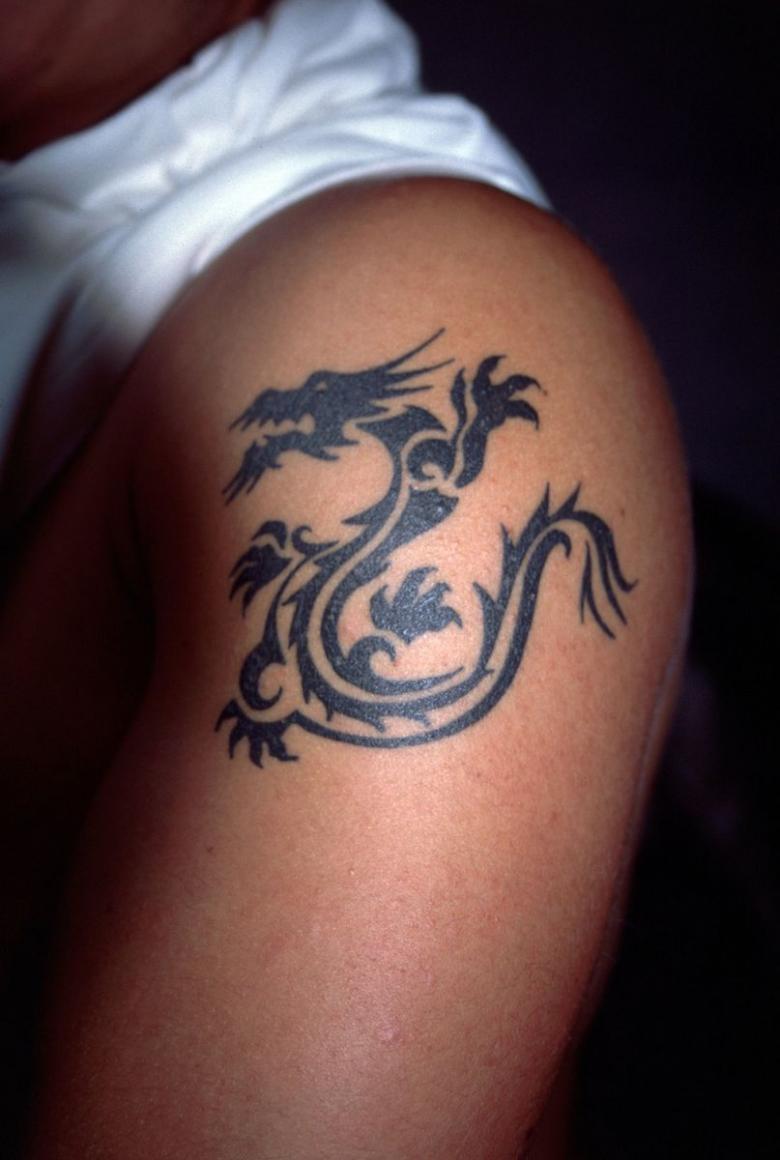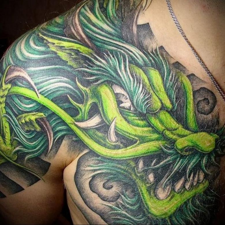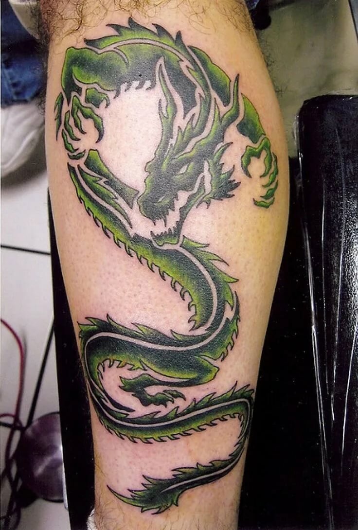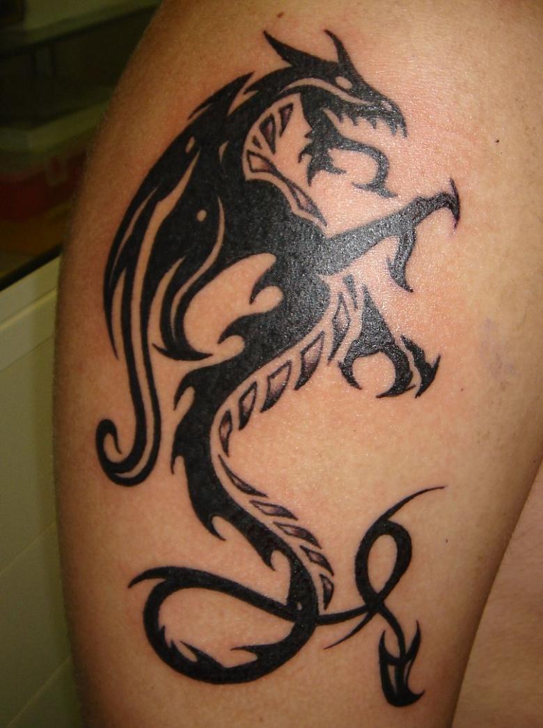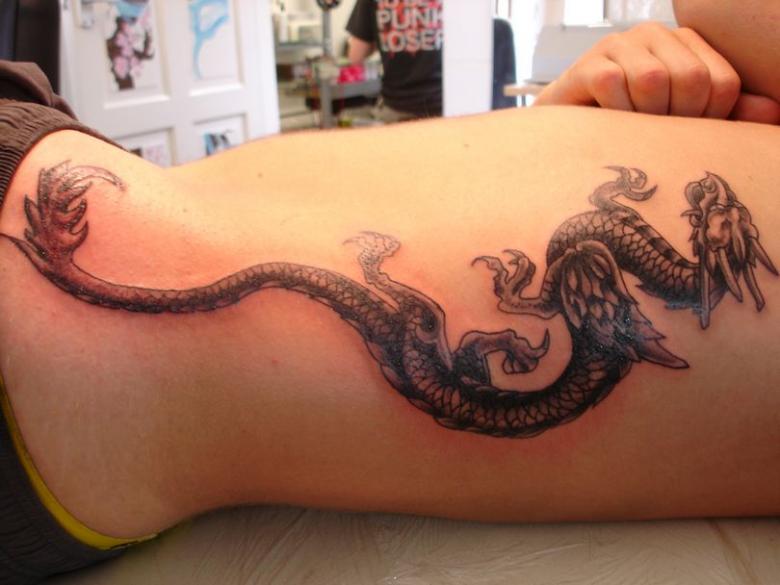 Un puissant lézard ailé en tout temps était populaire comme motif pour un tatouage. Souvent agressif et menaçant, le dragon sur le corps d'un guerrier était destiné à intimider l'ennemi. Dans le monde d'aujourd'hui, les tatouages sont faits plus pour des raisons esthétiques que pour le besoin réel de transmettre un message hostile, mais les dragons sont toujours respectés.