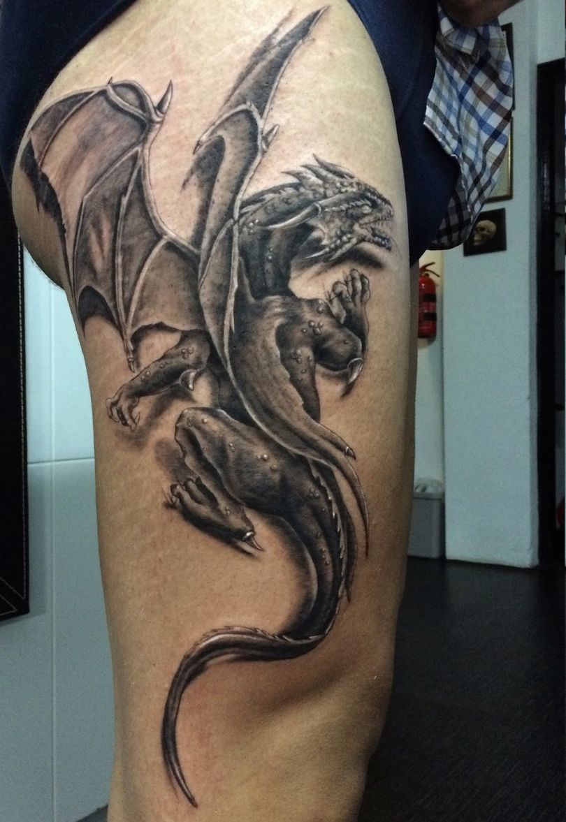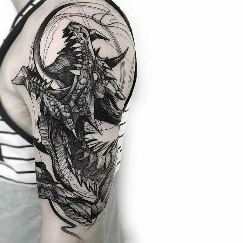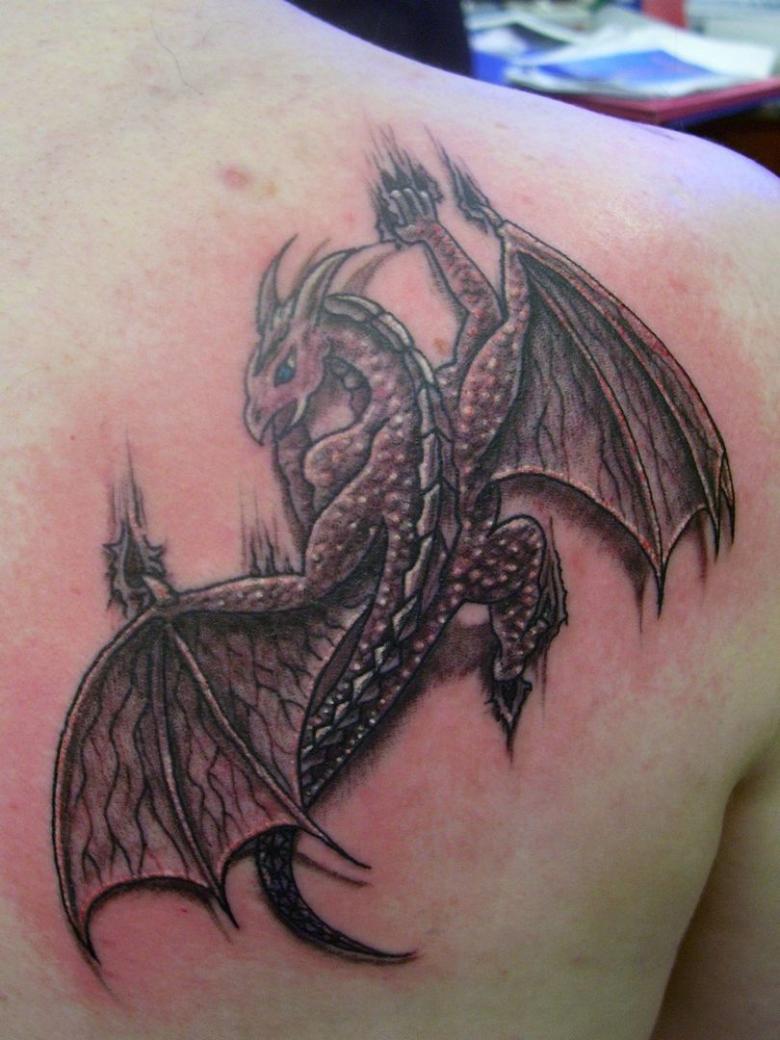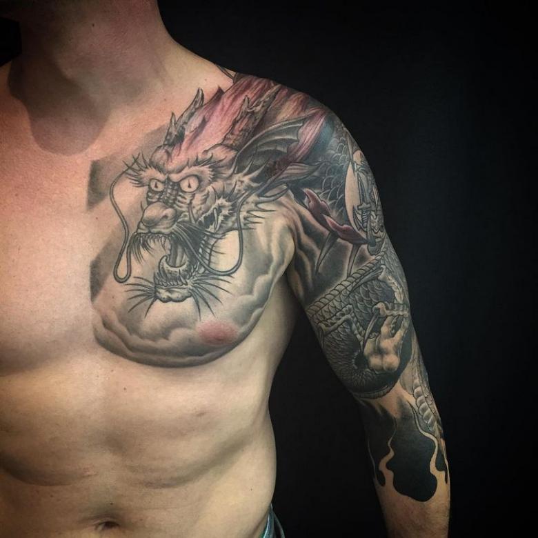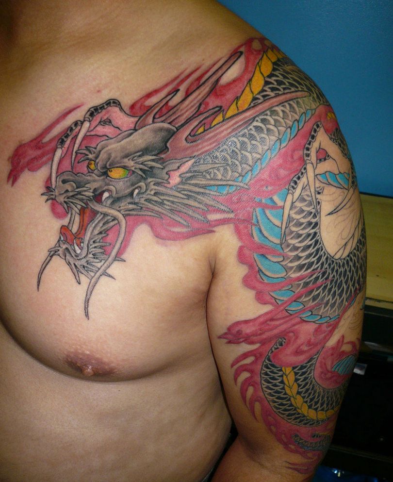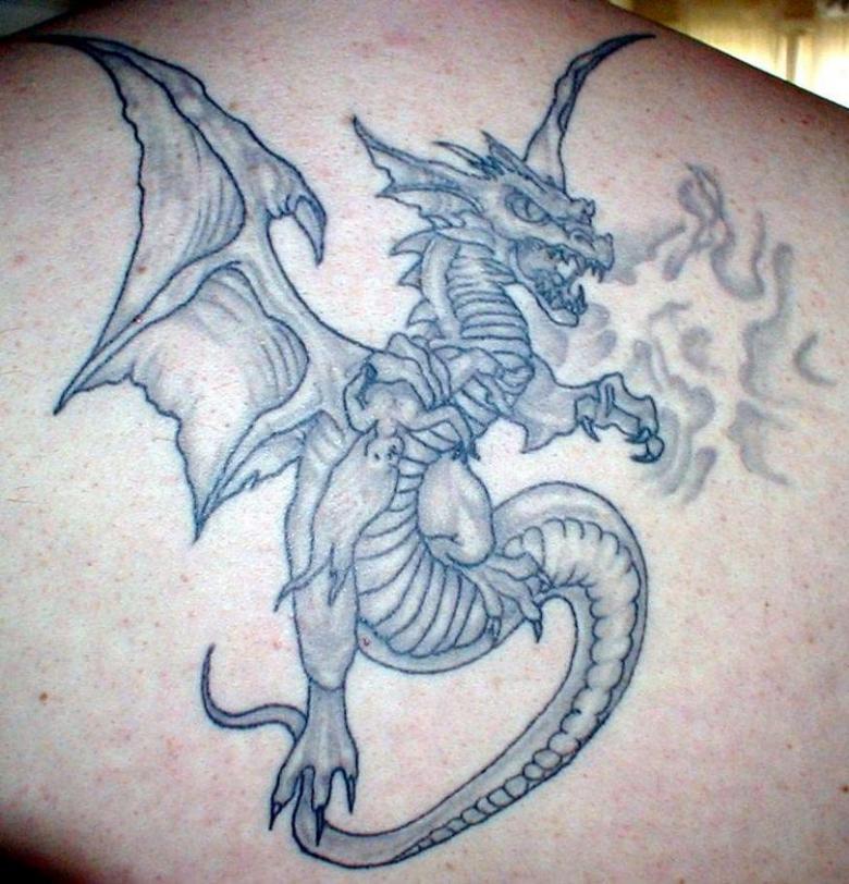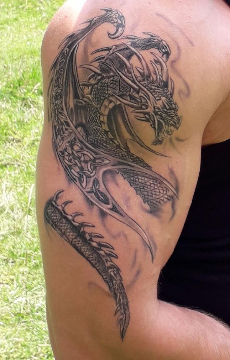 Un puissant lézard ailé en tout temps était populaire comme motif pour un tatouage. Souvent agressif et menaçant, le dragon sur le corps d'un guerrier était destiné à intimider l'ennemi. Dans le monde d'aujourd'hui, les tatouages sont faits plus pour des raisons esthétiques que pour le besoin réel de transmettre un message hostile, mais les dragons sont toujours respectés.
