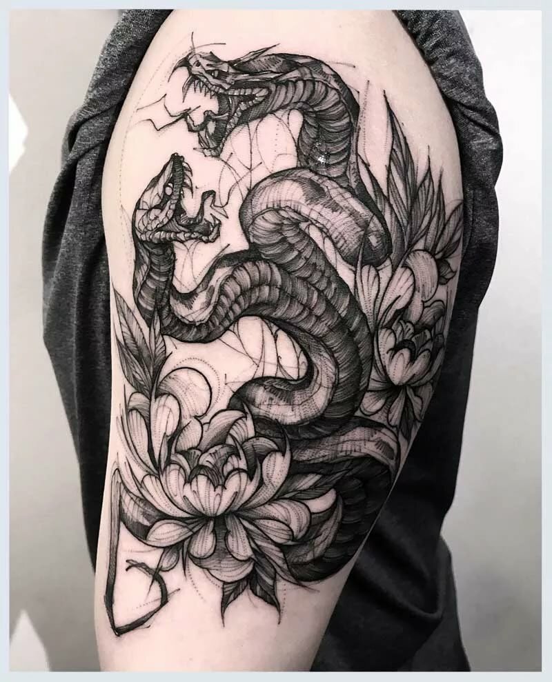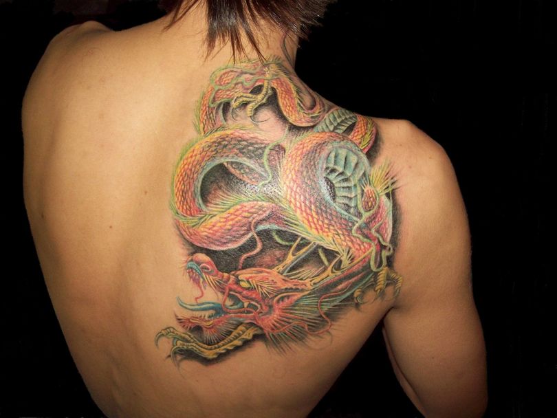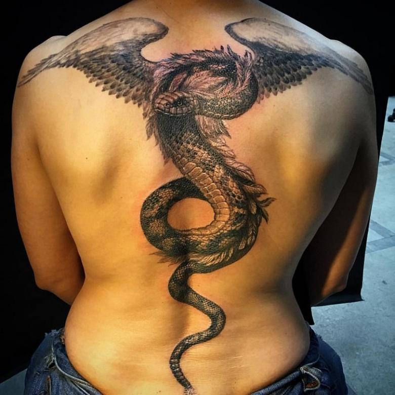 Les tatouages les plus intéressants sont ceux qui présentent une dynamique et un volume : par exemple, une queue enroulée en anneaux autour d'un membre ou d'un poignet étroit, ou de puissantes ailes en cuir déployées sur les omoplates.