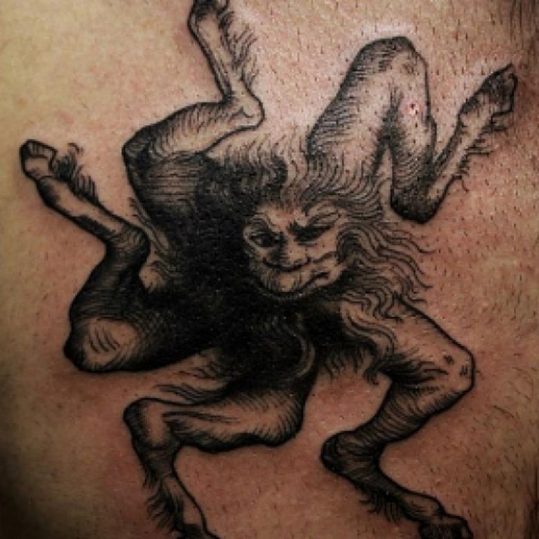 Ce type de tatouage est en partie minimaliste, mais soigneusement réalisé. Pas de couleurs ou de motifs fantaisistes, le contour du diable noir est absolument parfait. Le fait est que ce tatouage est si minimaliste qu'il peut symboliser presque tout.