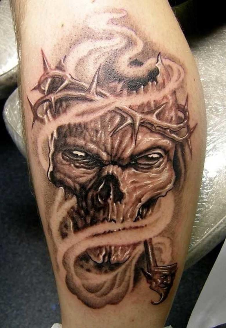 C'est l'un des tatouages les plus simples qui transmet simplement un message de "prudence" à votre entourage. Il est dépourvu de tout ajout fantaisiste et est diablement pur dans sa forme. Son look avec tous les éléments sataniques, dont les plus importants sont les cornes du diable, en fait un excellent choix pour les amateurs de tatouages. Il convient à ceux qui ont du tempérament et ne tolèrent aucune forme de chaos.