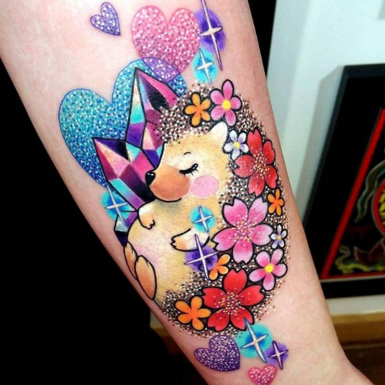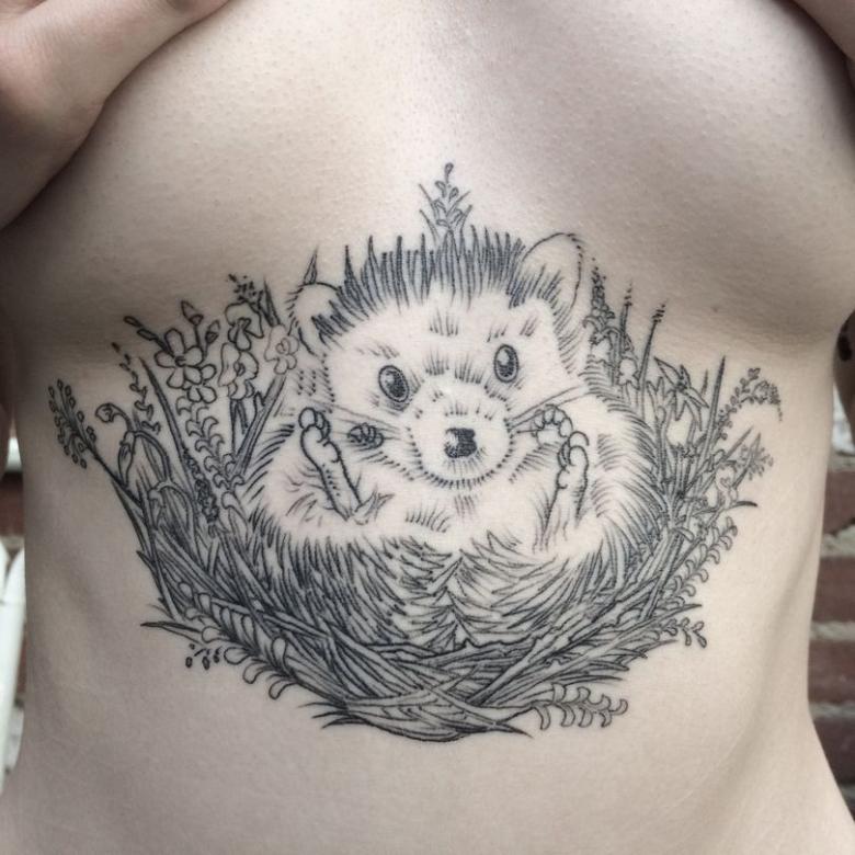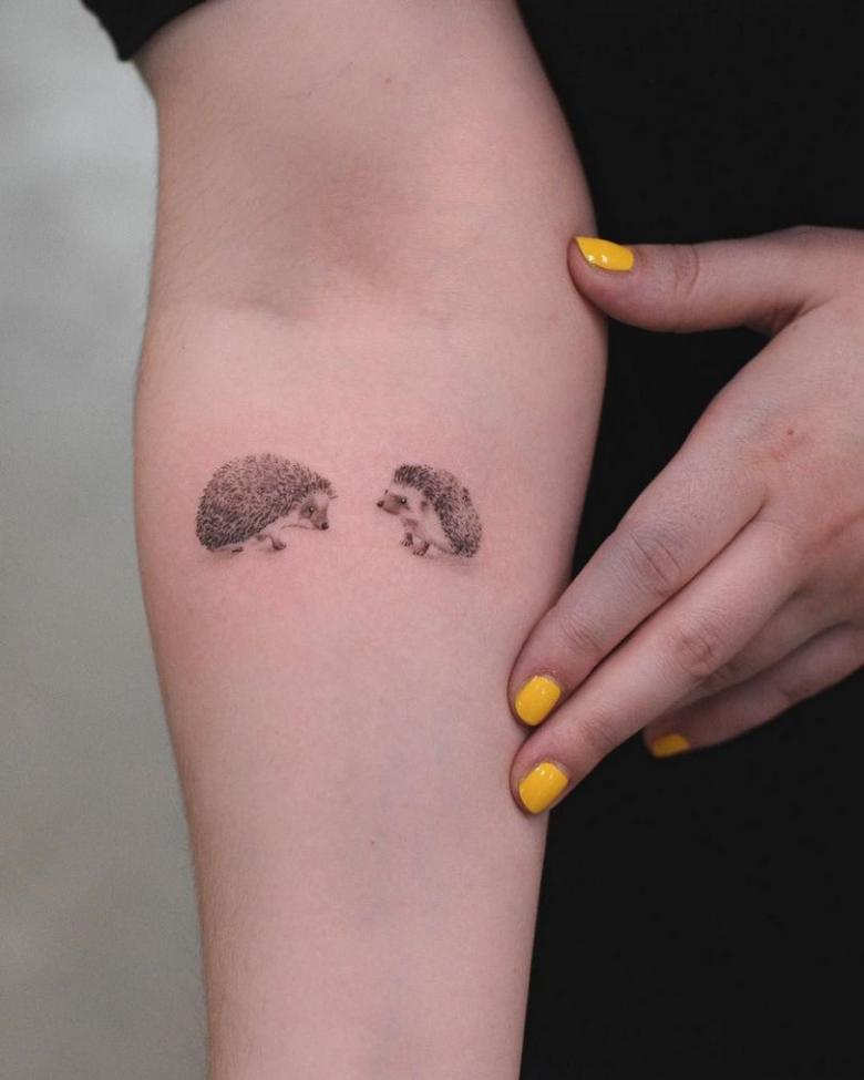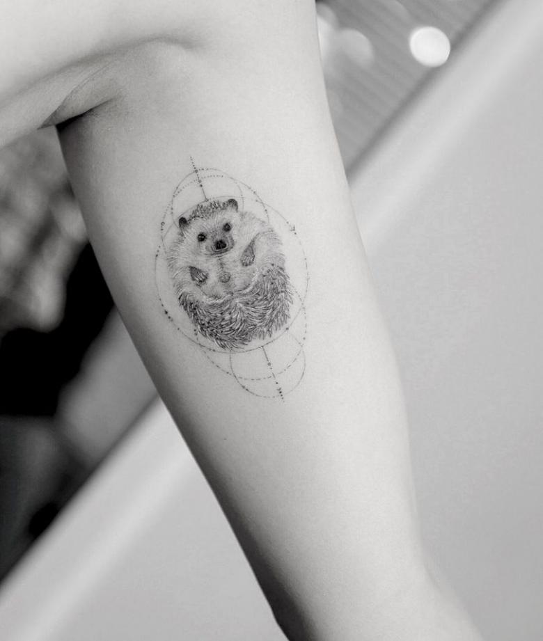 Tatouage hérisson - description, croquis amusants, signification pour les filles et les hommes, idées de photos