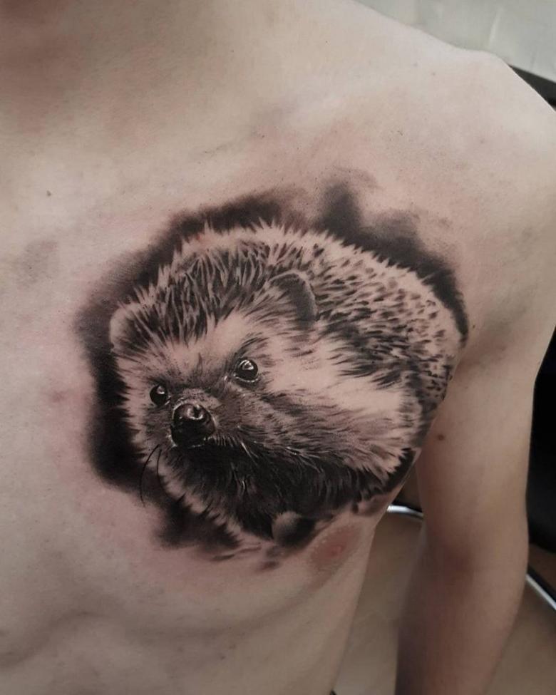 Le tatouage d'un hérisson sur le corps symbolise la stratégie évoluée d'autodéfense de l'homme. Bienveillants, mais capables de se défendre dans des situations difficiles.
