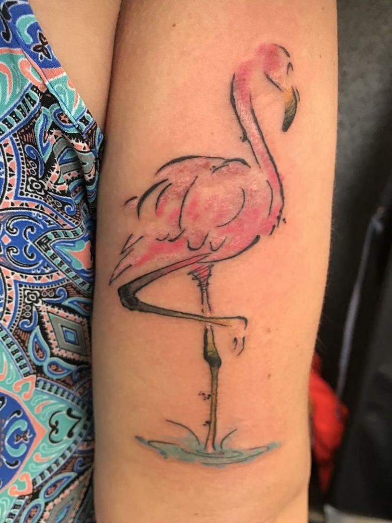 Ces tatouages ont gagné en popularité dans le monde entier car l'oiseau a une apparence rose attrayante, une forme de cou envoûtante semblable à celle d'un cygne et de longues pattes qui ressemblent à celles d'une autruche. Ensemble, ils forment une image unique et agréable qui est recherchée dans le monde entier.