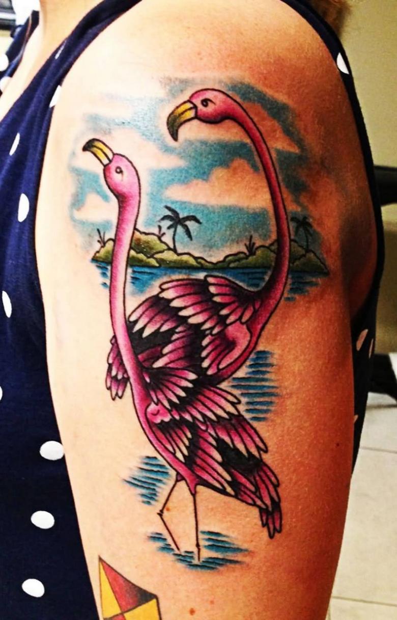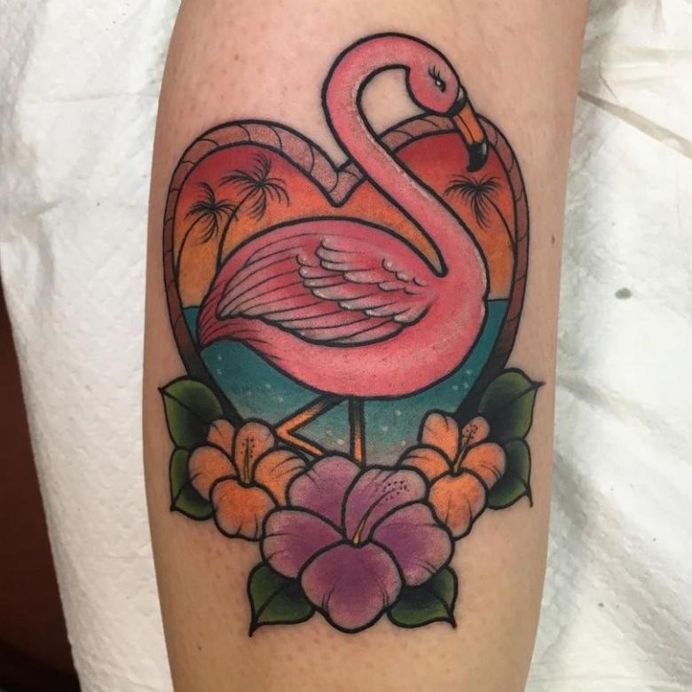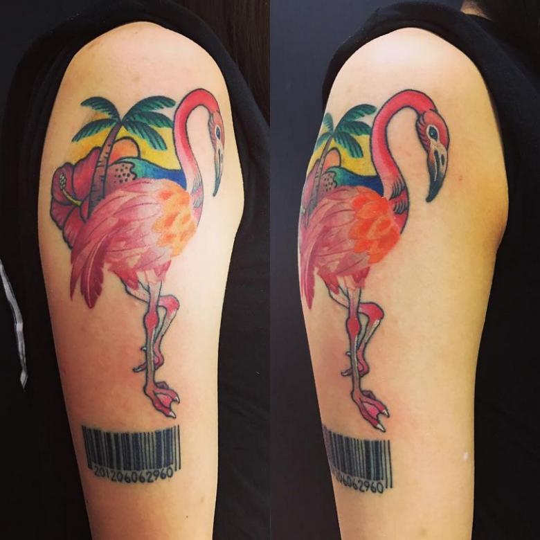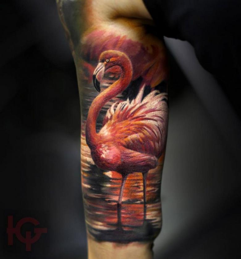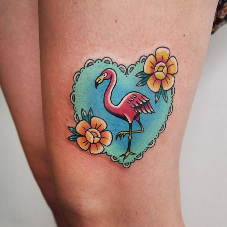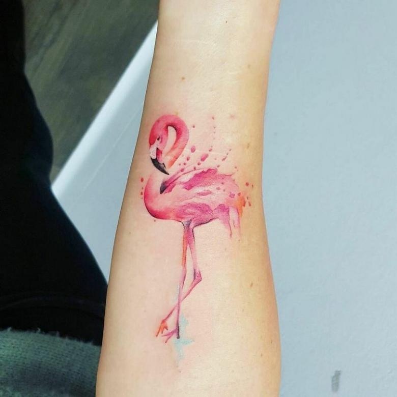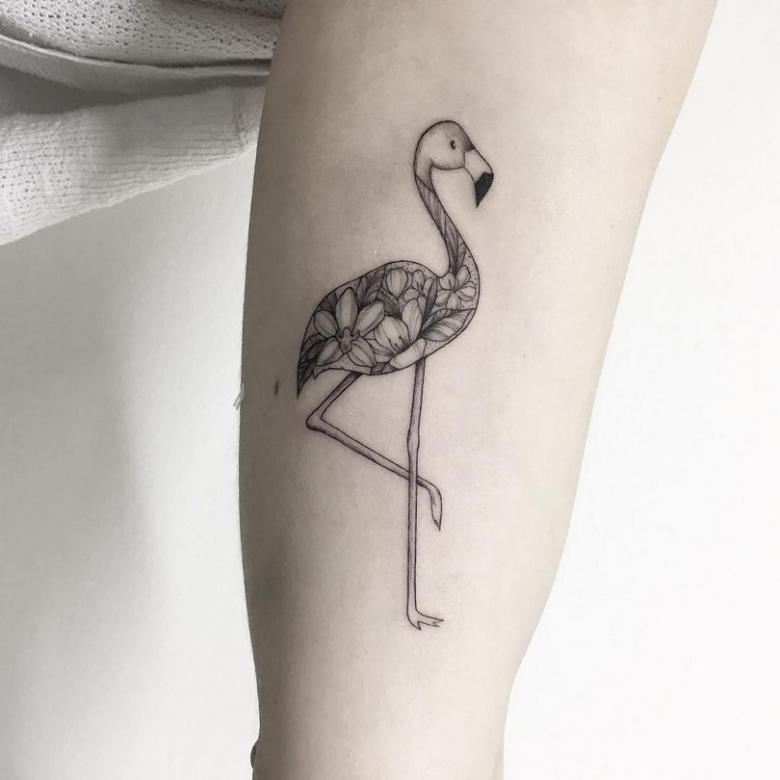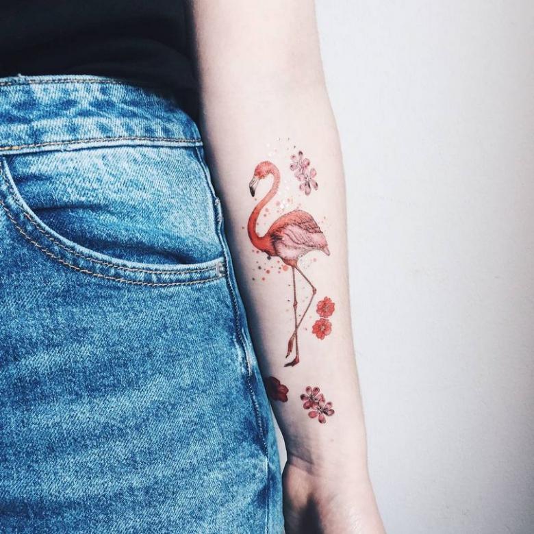 Ce tatouage est souvent appliqué sur le corps des amoureux, car l'oiseau représente l'amour et la dévotion. Les flamants roses choisissent un partenaire et ne se séparent pas jusqu'à la fin de leur vie. Le mâle participe à l'éclosion des œufs.