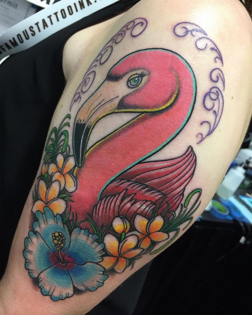 Tatouage de flamant rose - styles, significations, croquis amusants et idées de photos