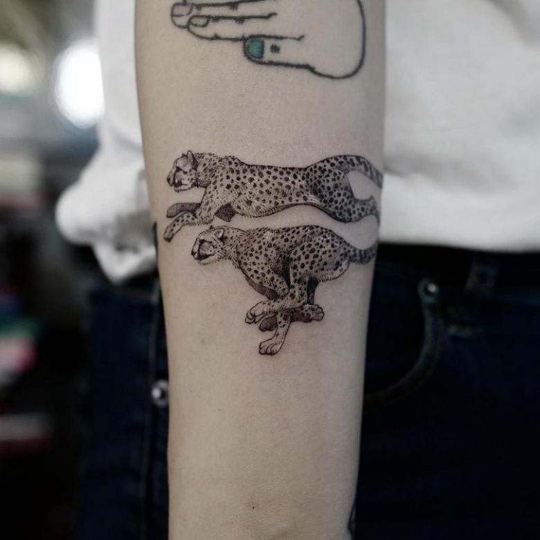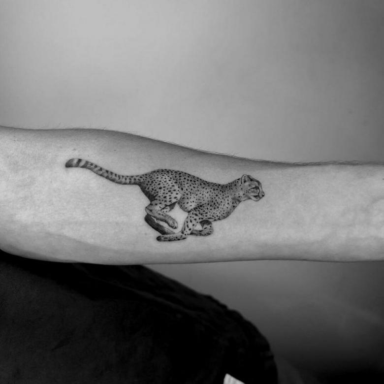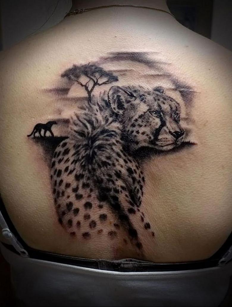 Tattoo Cheetah - symbolisme et dessins, signification des tatouages pour les filles et les hommes, où appliquer l'image (sur le bras, l'épaule), photos spectaculaires.
